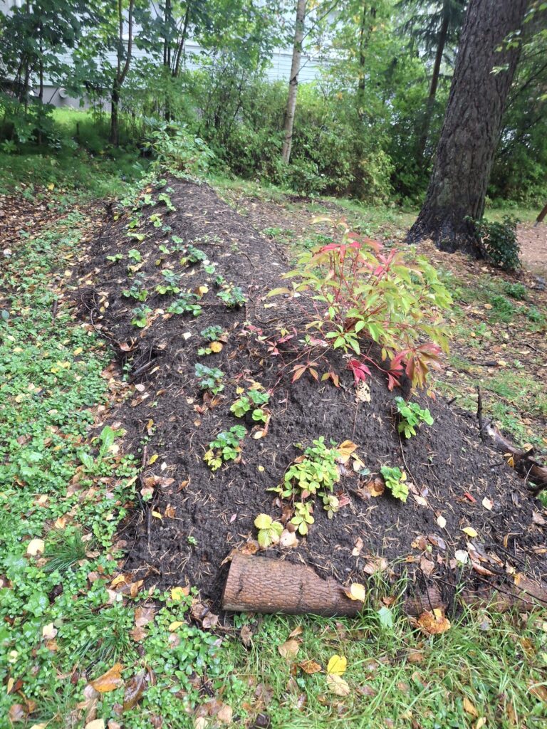 Toteutimme Kangasalla Listekuja 2:ssa kokeiluluontoisen Hugel-kultur -projektin, jossa rakensimme asteittain maatuvia kohopenkkejä hyödyntäen kohteellamme jo valmiiksi olevia luonnonmateriaaleja. Hugel-kultur tuo viheralueille kestävyyttä ja elinvoimaa, ja liittää myös luonnon kiertokulun osaksi pihaa.