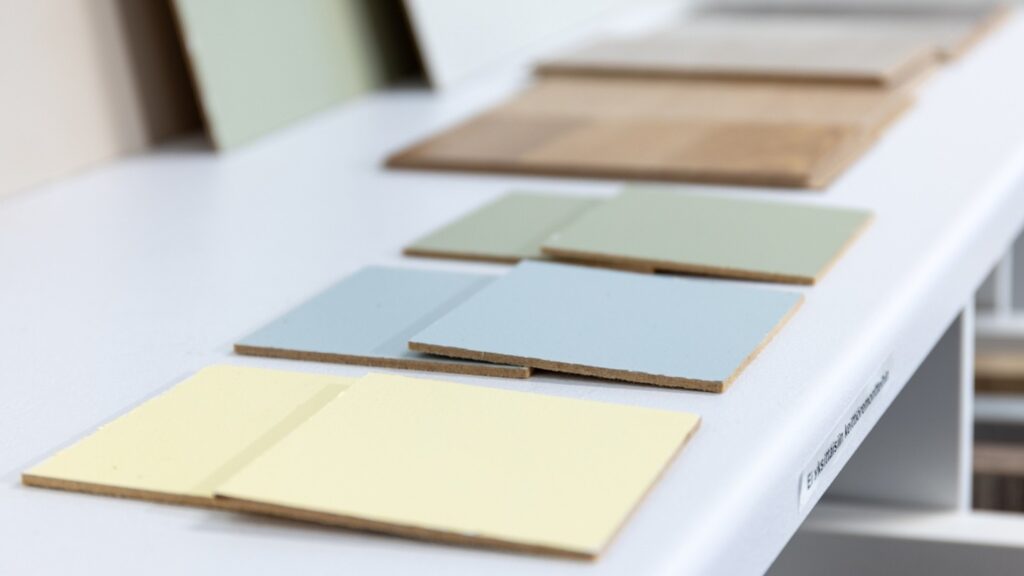 Pariskunta osallistui Showroomimme omatoimiremontteja esittelevään tilaisuuteen, jossa he pääsivät tutustumaan seinämaaliemme värivalikoimaan.
