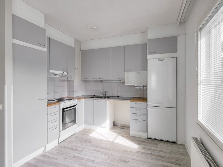 Keittiö ja olohuone muodostavat yhtenäisen ja avoimen tilan, josta on käynti parvekkeelle. Ruokapöytä mahtuu keittiön puolelle. Keittiössä on tilavaraus astianpesukoneelle. Kaappitilaa löytyy sekä makuuhuoneen että eteisen kaapistoista. Tässä toimivapohjaisessa ja viihtyisässä asunnossa on myös oma sauna.