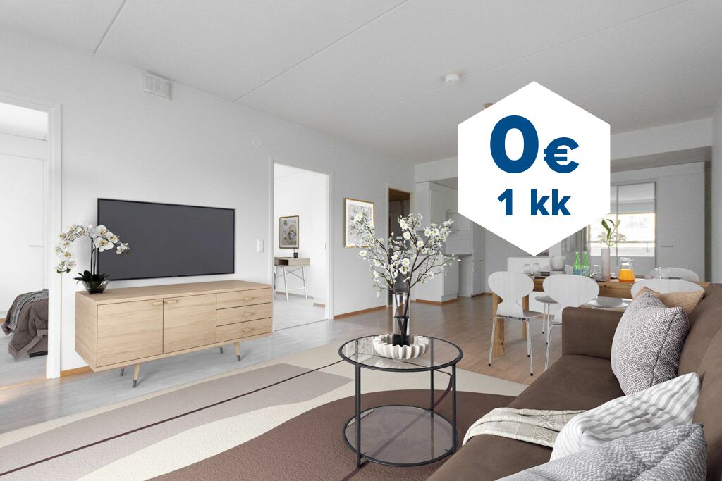 Tee sopimus nyt – saat ensimmäisen kuukauden käyttövastikkeen hintaan 0 €. Etu on voimassa 15.4.2026 saakka ja koskee vain vapaita asuntoja ja uusia asiakkaita. Vesi- ja autopaikkamaksut normaalisti.