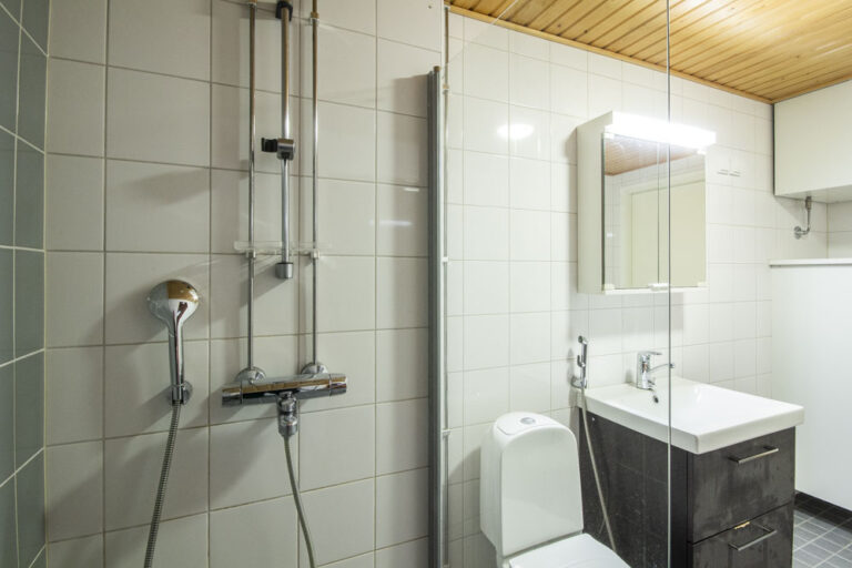 Olohuoneesta on käynti lasitetulle parvekkeelle, joka tarjoaa mukavan lisätilan rentoutumiseen ympäri vuoden.