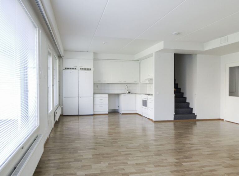 Omalla terassilla varustettu perheasunto luonnonläheisellä alueella Fallpakassa. Avara yhdistetty keittiö ja olohuone, josta kulku terassille. Arkea helpottamassa wc- ja suihkutilat molemmissa kerroksissa. Yhdestä makuuhuoneesta käynti omalle parvekkeelle.
