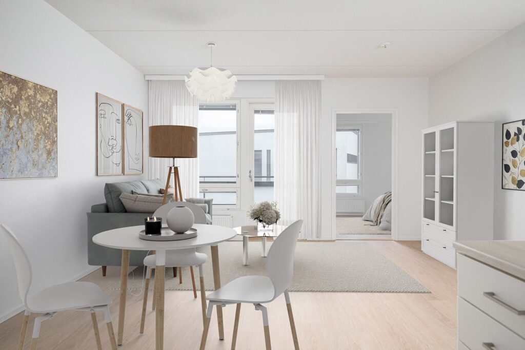 Tervetuloa tutustumaan tähän viehättävään kolmannen kerroksen kaksioon! Tässä kodissa yhdistyvät valoisuus, käytännöllisyys ja viihtyisyys. Kodin sydämen muodostaa avara oleskelutila, jossa keittiö ja olohuone yhdistyvät toimivaksi kokonaisuudeksi. Siirrettävä keittiösaareke tuo lisää joustavuutta ja säilytysratkaisuja. Kylpyhuone on reilun kokoinen ja oman saunan lämpö kutsuu rentoutumaan. Lasitetulta parvekkeelta avautuu myös vehreät näkymät metsän suuntaan. Tämä koti sopii erinomaisesti niin yksin asuvalle kuin pariskunnallekin. Tule ihastumaan paikan päälle!