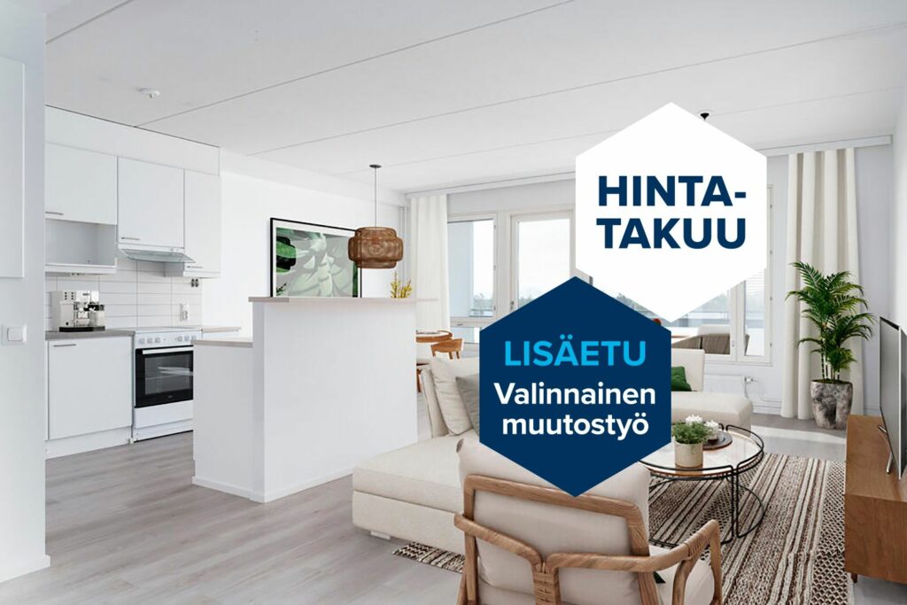 Upea, 4. kerroksen kolmio, jossa hyvin suunniteltu pohjaratkaisu. Tilava olohuone ja yhdistetty saarekkeellinen avokeittiö luovat lisätilan tuntua. Iso lasitettu parveke toimii lisähuoneena. Läpitalon huoneisto, jonka ikkunoista tulvii valoa. Huoneistossa on oma sauna. Tämä asunto tarjoaa loistavat puitteet viihtyisään asumiseen.