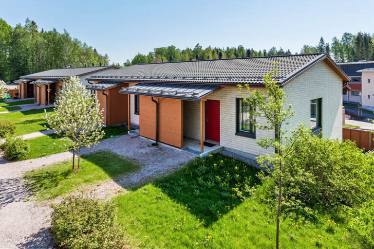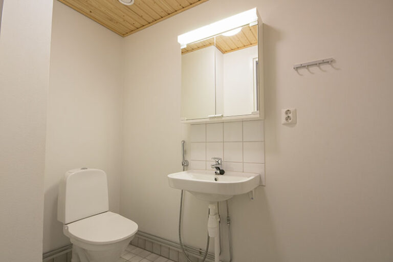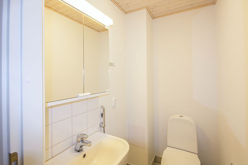 Alakerrassa sijaitsevat molemmat makuuhuoneet omassa rauhassaan. Pienemmästä makuuhuoneesta on käynti omalle suojaisalle pihalle, mikä tuo mukavasti lisäarvoa ja käyttömukavuutta esimerkiksi aamukahville tai iltahetkiin. Alakerrasta löytyvät myös yhdistetty kodinhoitotila/kylpyhuone ja sauna, joissa arki ja rentoutuminen kulkevat käsi kädessä. Myös alakerrassa oleva erillinen wc sujuvoittaa arkea. Käytännöllinen varastohuone auttaa pitämään kodin tavarat hyvässä järjestyksessä.