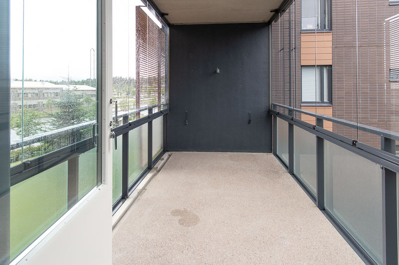 Näppärä päätykolmio, jonka asumismukavuutta lisää lasitettu parveke. Parvekkeelle käynti makuuhuoneesta. Tässä asunnossa voit nauttia oman saunan löylyistä. Keittiössä on tilavaraus astianpesukoneelle ja kylpyhuoneessa paikkansa pesutornille.