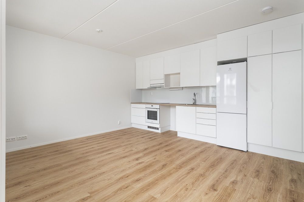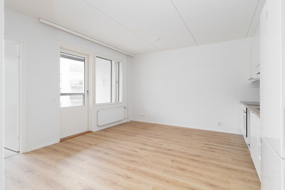 Vapaana juuri remontoitu yksiö tupakeittiöllä. Asunnossa siis erillinen makuuhuone ja lasitettu parveke. Asunnon keittiön pinnat ovat vaaleata puuta ja nätin valkoiset kaapistot.