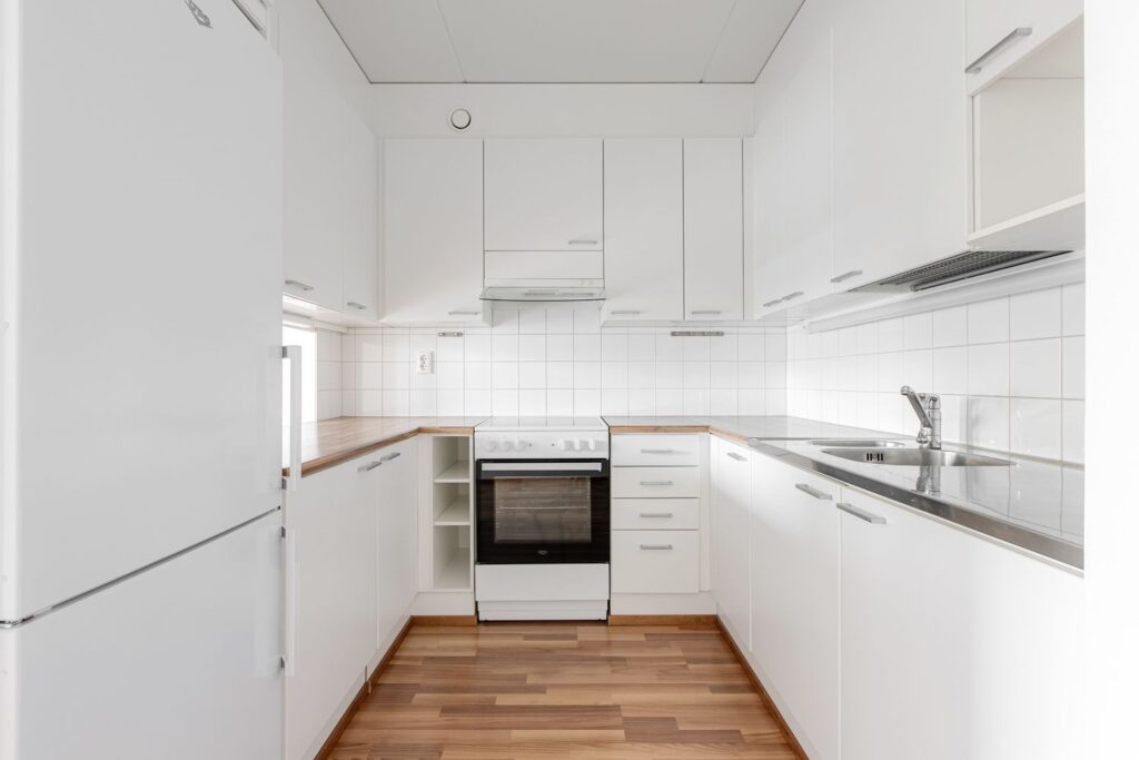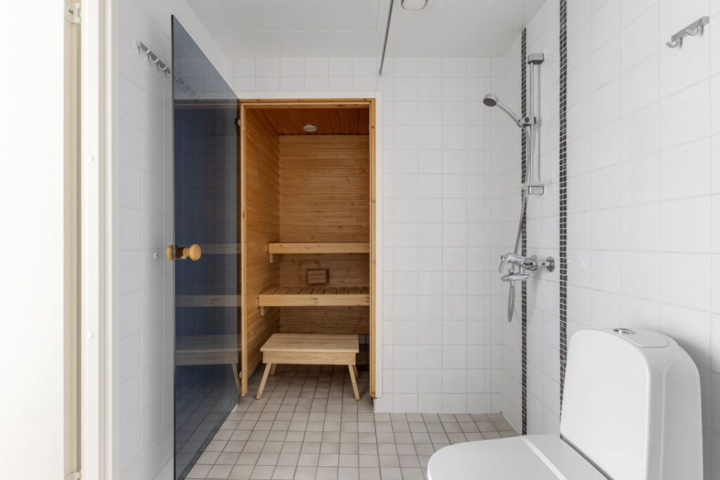 Keittokomerossa on hyvin kaappitilaa, josta kulku olohuoneeseen. Lasitettu parveke toimii aikaisesta keväästä myöhäiseen syksyyn ylimääräisenä lisähuoneena, jossa voit viettää aikaa ilta-aurinkoa ihastellen. Asunnossa on tilava kylpyhuone, jossa pääset nauttimaan oman saunan löylyistä.