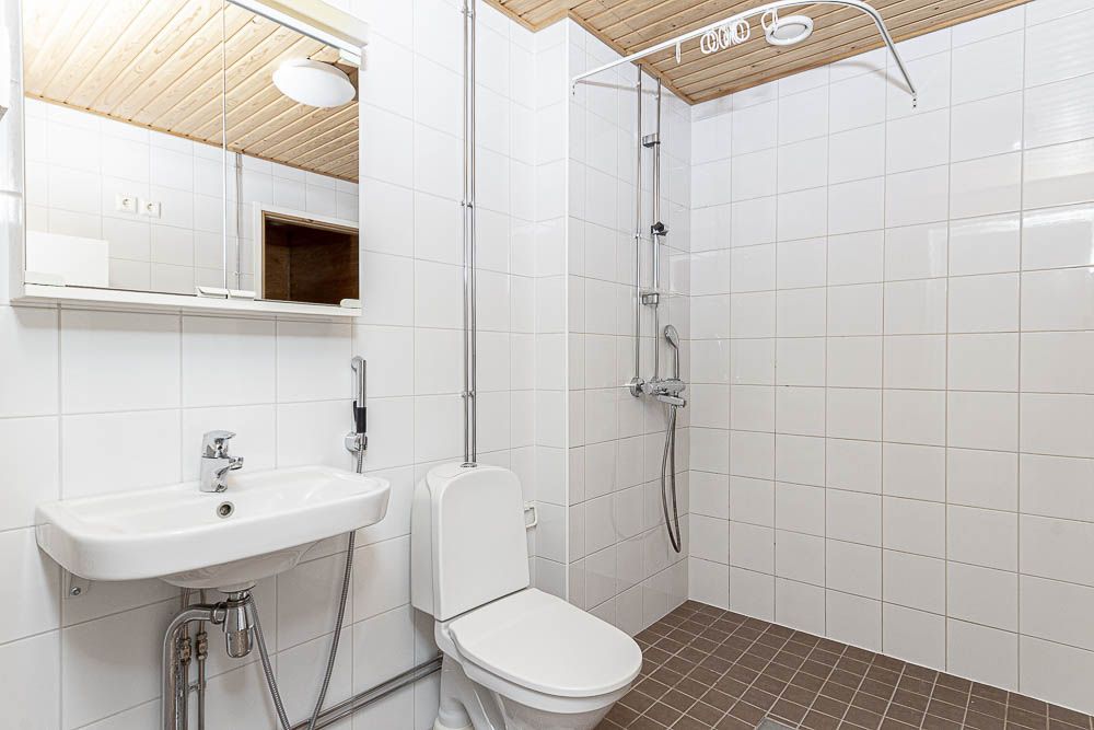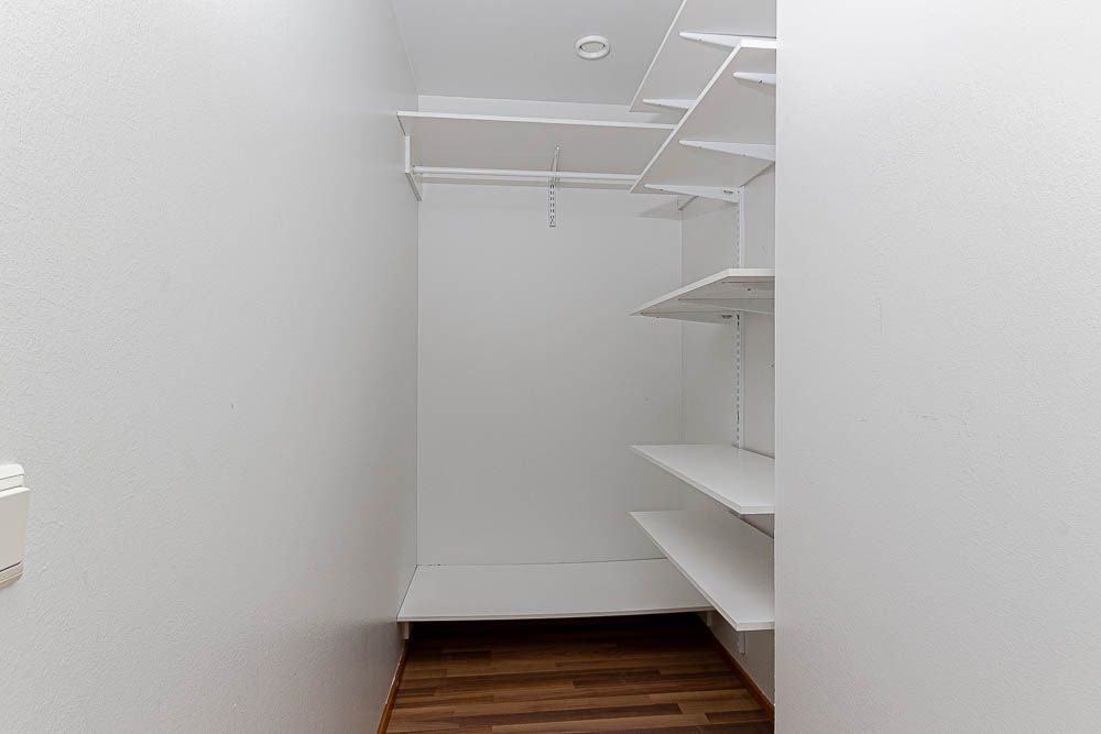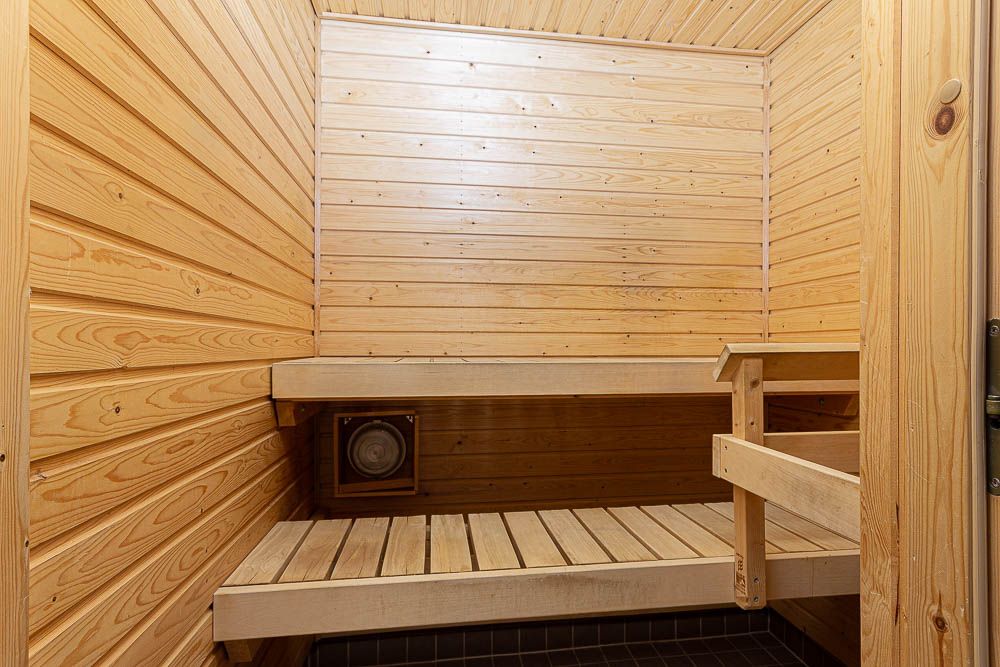 Eteisestä löytyy tilava vaatehuone, joka helpottaa arjen säilytysratkaisuja ja pitää kodin siistinä. Päivän päätteeksi voit rentoutua oman saunan löylyissä ja antaa kiireen jäädä taakse.