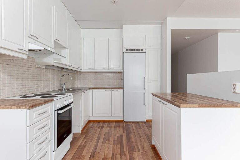 Olohuone ja avokeittiö muodostavat kodin sydämen. Tilat avautuvat toisiinsa luontevasti, ja suuret ikkunat päästävät valon virtaamaan huoneeseen kauniisti. Keittiössä on runsaasti tilaa niin ruoanlaitolle kuin yhdessäololle.