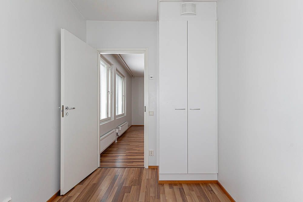 Asunnon kaksi makuuhuonetta tarjoavat rauhalliset puitteet lepoon ja omaan aikaan. Toisesta makuuhuoneesta pääsee isolle, lasitetulle parvekkeelle, joka tuntuu kuin ylimääräiseltä huoneelta. Siellä on ihana nauttia metsäisistä maisemista ja lämpimistä kesäilloista.