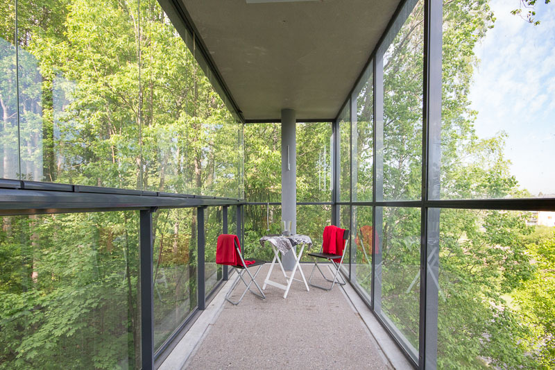 Oman saunan lämmöstä pääset nauttimaan juuri silloin, kun sinulle sopii. Olohuoneesta on käynti lasitetulle parvekkeelle, josta avautuvat näkymät kahteen eri ilmansuuntaan.