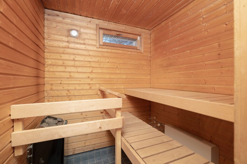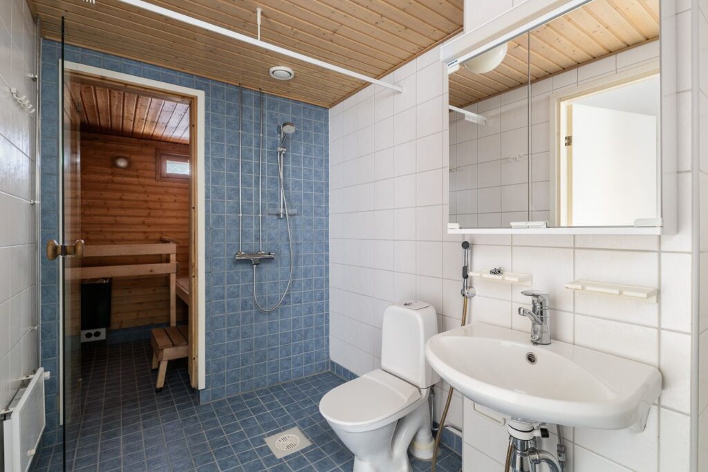 Yläkerrassa sijaitsevat kolme makuuhuonetta, joista yhdestä on käynti parvekkeelle. Kylpyhuoneen yhteydessä on oma sauna, jossa pääset nauttimaan rentouttavista löylyistä.