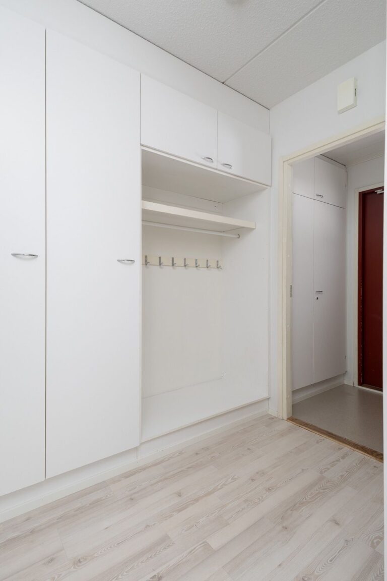 Sisääntulossa on tuulikaappi, josta astutaan kompaktiin eteiseen. Kompaktiudestaan huolimatta eteisessä on hyvin säilytystilaa tarjolla. Arkea sujuvoittava erillis-wc sijaitsee eteisen yhteydessä. Keittiö ja ruokailutila muodostavat yhdessä toimivan kokonaisuuden. Olohuoneesta on kulku omalle terassille, jossa voit nautiskella ulkoilmasta.