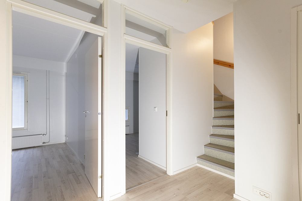 Tilava neliö kahdessa tasossa tarjolla. Pohjakerroksesta sisäänkäynti ja toisessa kerroksessa olevasta olohuoneesta käynti omalle pihalle. Asunnossa on remontoitu keittiö ja suurempi kylpyhuone. Asunnossa on sisävarasto. Jättäisittekö hakemuksen meille?