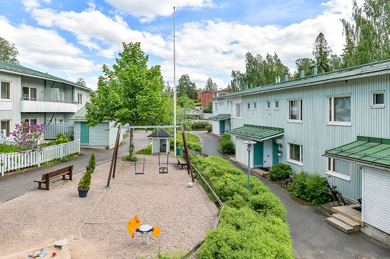 Ihastuttava kaksitasoinen perheasunto, joka sijaitsee lapsiystävällisellä alueella. Yläkerrassa on keittiö, olohuone, makuuhuone ja erillis-WC. Olohuoneesta käynti suurelle parvekkeelle. Alakerrassa on kaksi makuuhuonetta ja tilava kylpyhuone sekä oma sauna. Etupihalla upea terassi, jossa koko perhe voi nauttia ulkoilmasta ja auringon paisteesta.
