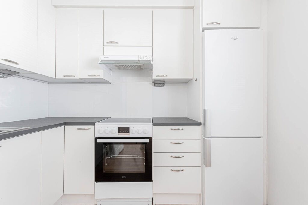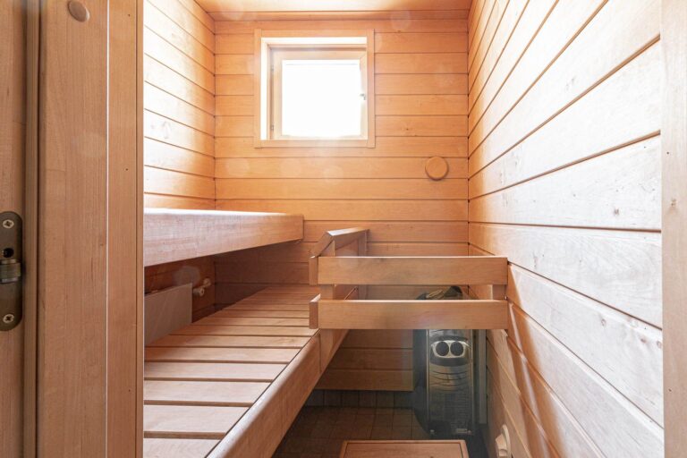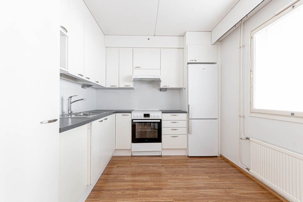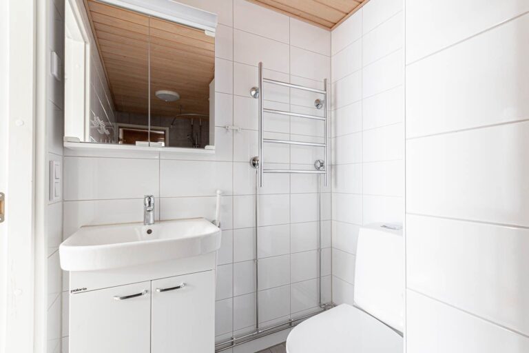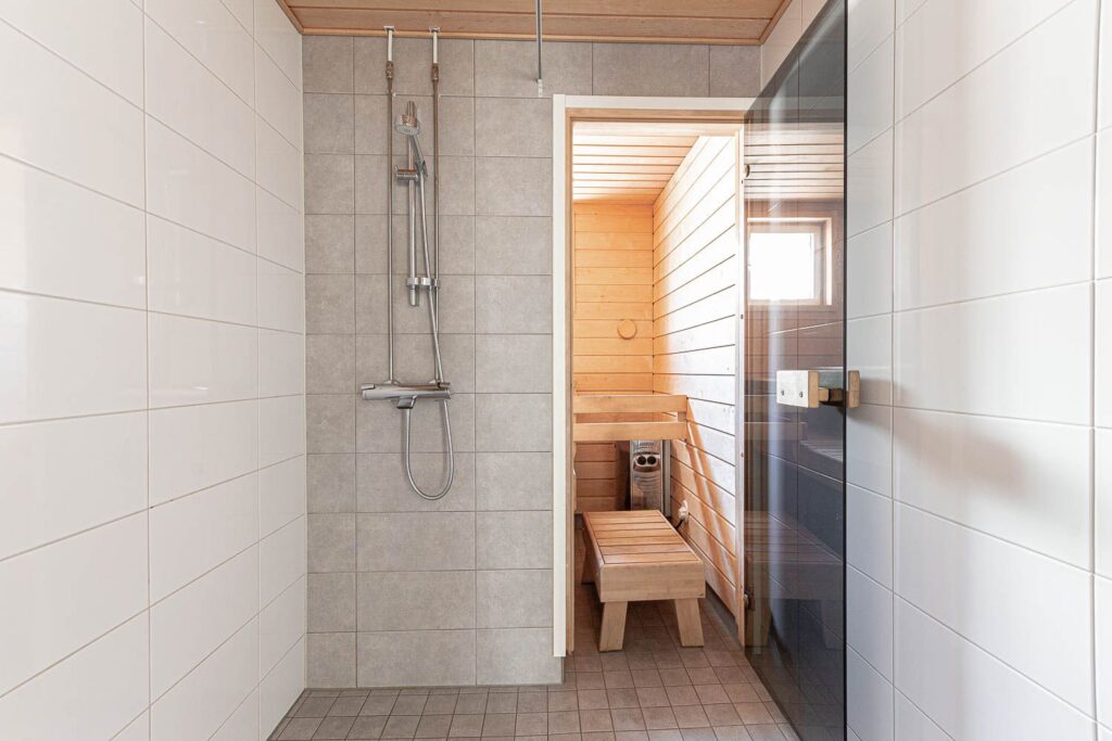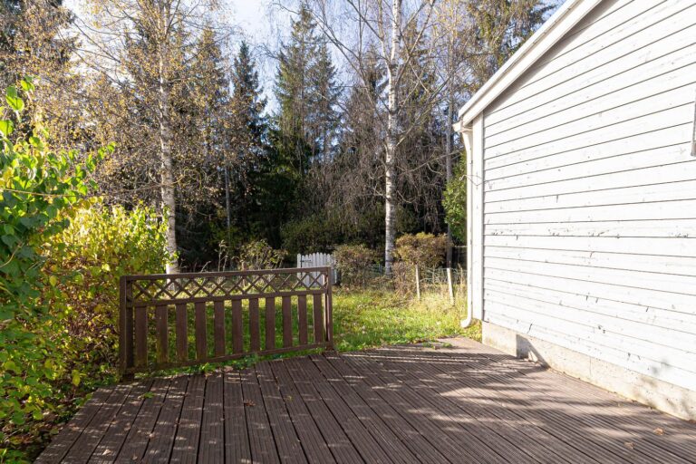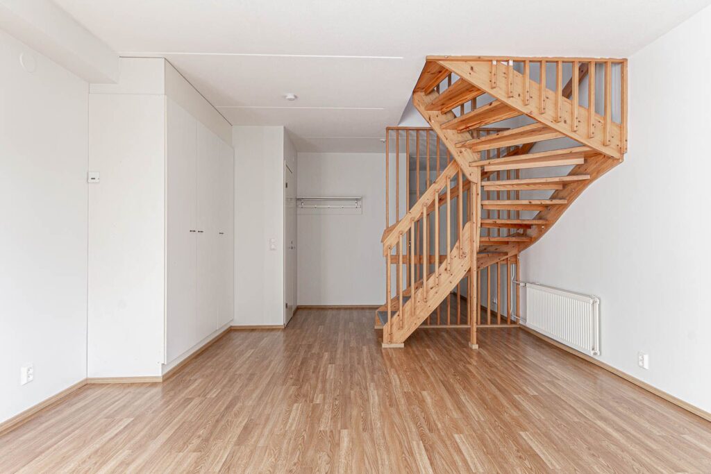 Alakerrassa sijaitsee keittiö, joka tarjoaa suojaisan tilan ruoanlaittoon. Erillis-wc löytyy myös alakerrasta. Valoisasta olohuoneesta on kulku takapihalle, jossa sijaitsee tilava kylmävarasto, johon on kätevä säilöä esimerkiksi urheiluvälineitä tai kausitavaroita. Yläkerrassa on kaksi tilavaa makuuhuonetta sekä vaatehuone. Sauna sijaitsee pesuhuoneen yhteydessä – täydellinen paikka rentoutua päivän päätteeksi.