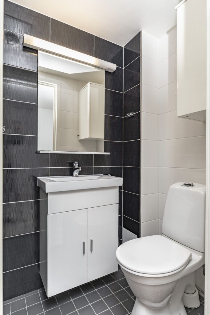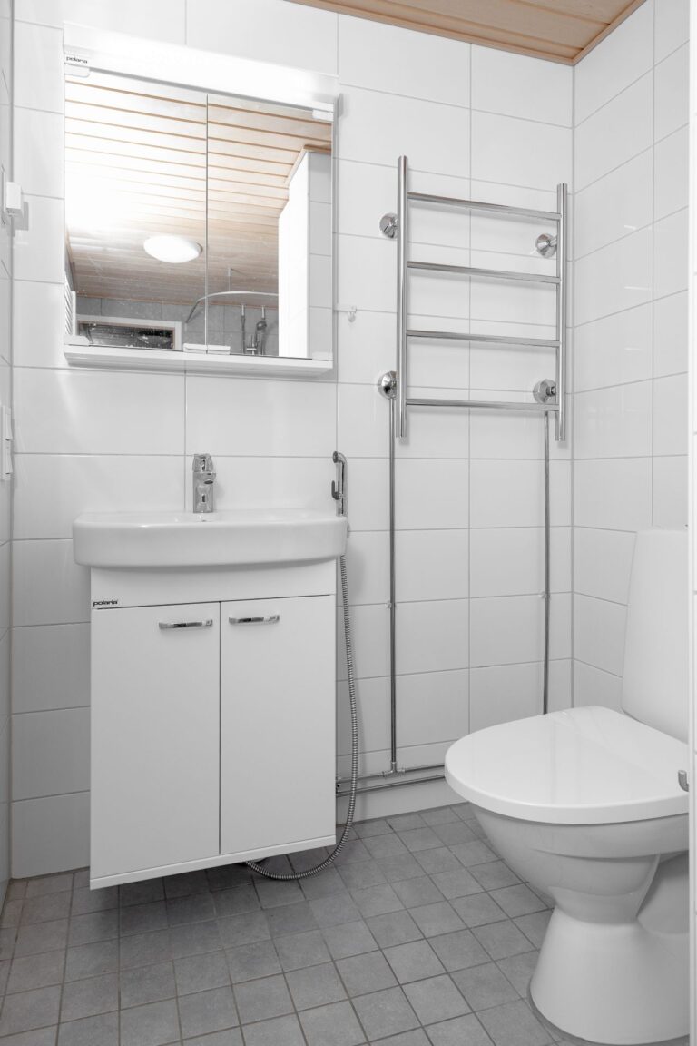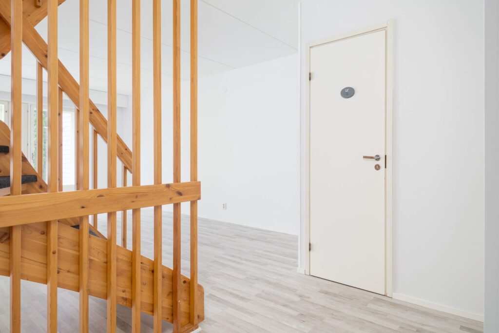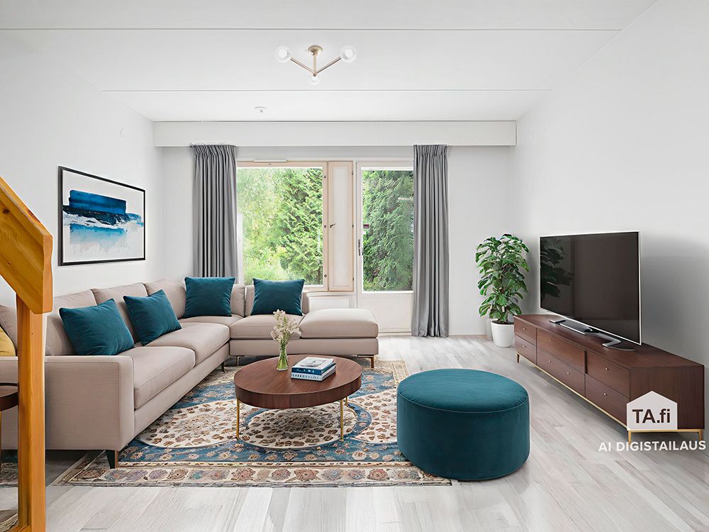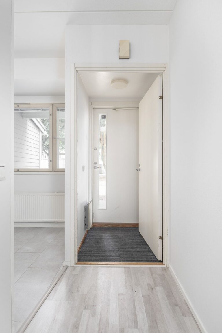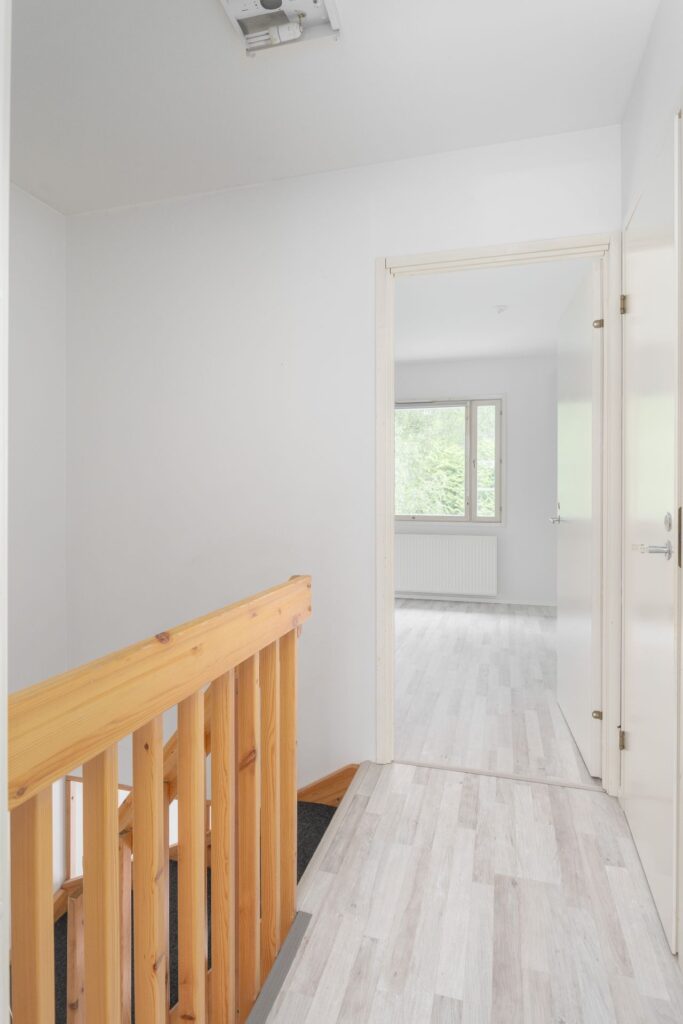 Alakerta: Tilava olohuone, josta on käynti terassille. Olohuoneessa on suuret ikkunat, jotka tuovat runsaasti luonnonvaloa sisään. Käytännöllinen keittiö, joka on varustettu moderneilla laitteilla ja runsaalla säilytystilalla. Keittiössä on hyvin tilaa ruoanlaitolle ja ruokailulle. Eteinen, jossa on säilytystilaa ulkovaatteille ja kengille. Yläkerta: Hyvän kokoiset makuuhuoneet, joissa on vaatekaapit. Moderni kylpyhuone, jossa on suihku, wc. Erillinen WC.