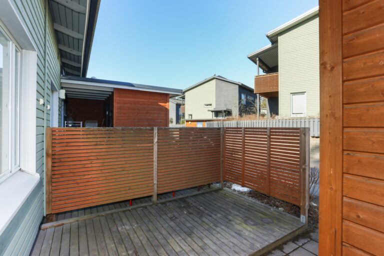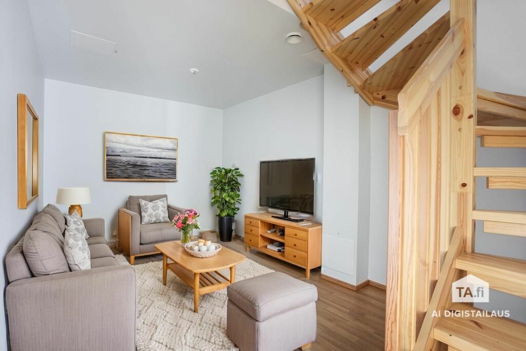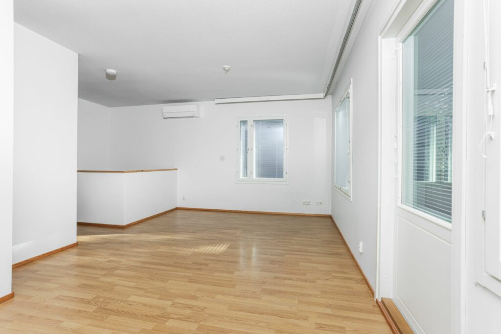 Viihtyisä ja siistikuntoinen rivitalon päätyasunto. Sisääntulokerroksessa on keittiö ja makuuhuone. Olohuoneesta/ruokailutilan vierestä on käynti parvekkeelle. Alakerrassa on saunaosasto ja kaksi makuuhuonetta, joista toisen yhteydessä on vaatehuone ja käynti terassiparvekkeelle. Wc:t suihkun kera löytyvät näppärästi molemmista kerroksista. Asunnossa on ilmalämpöpumppu, joka on asennettu muutostyönä kesällä 2024. Yläkerran ikkunoissa on kaihtimet.