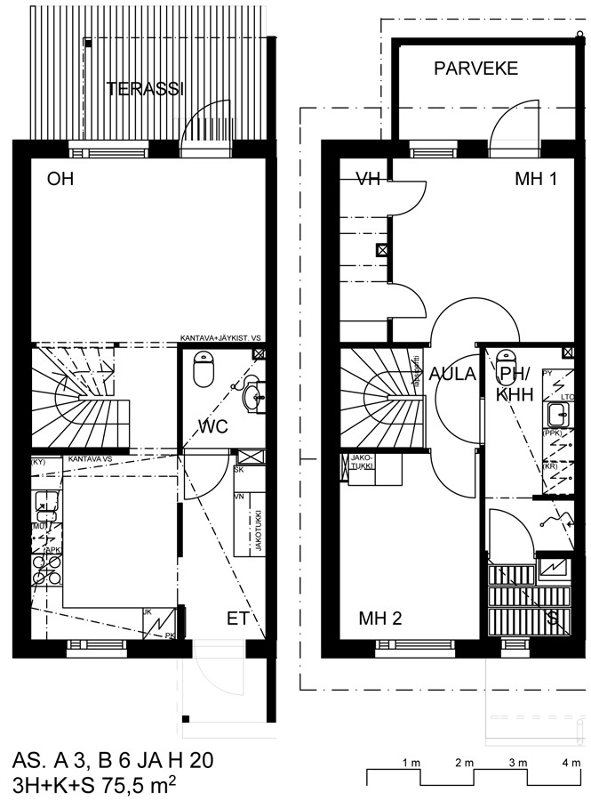 Rivitalon kaksikerroksinen päätyasunto.