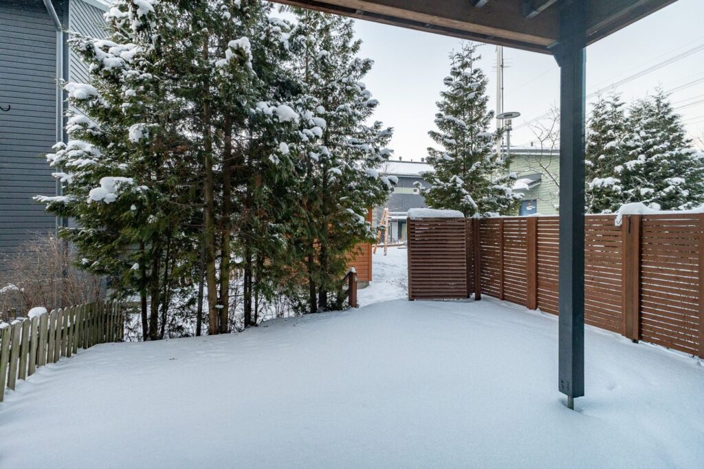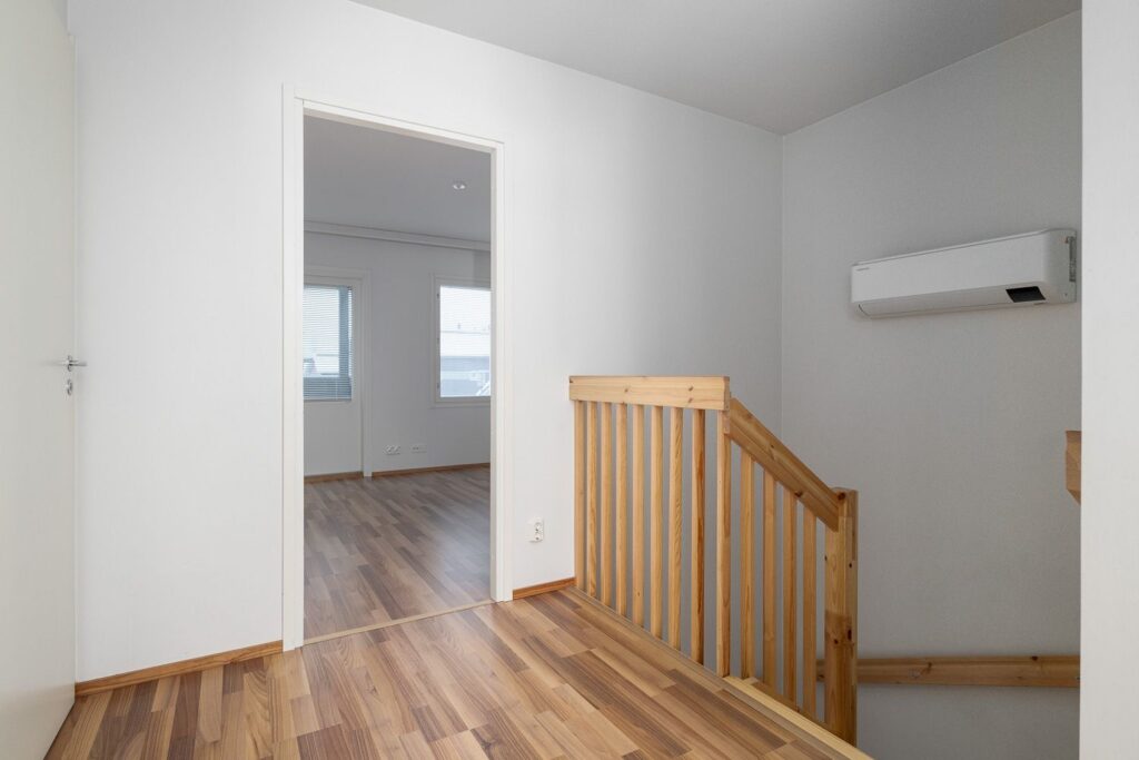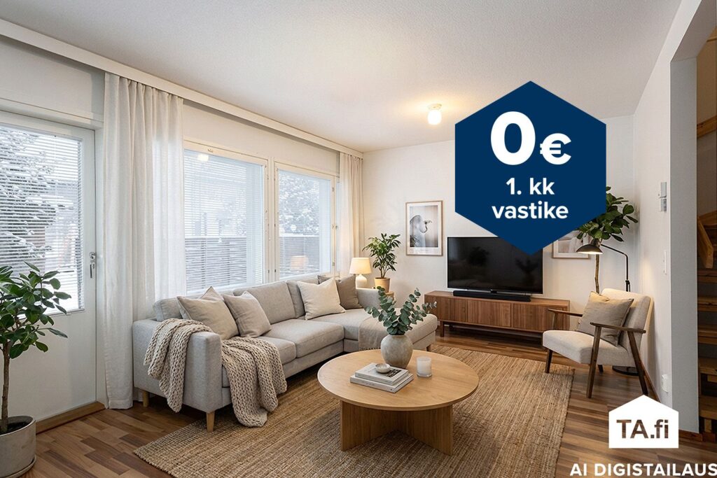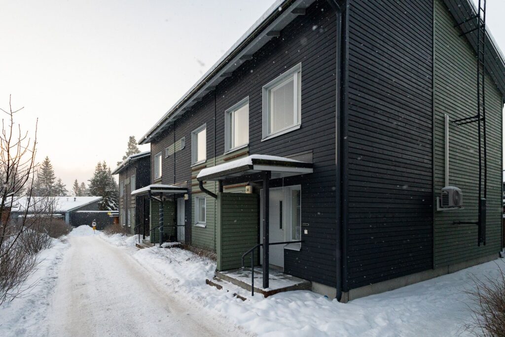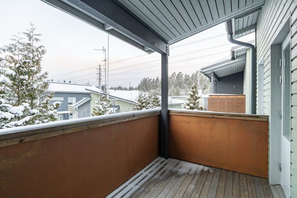 Kaksitasoinen rivitalon päätyasunto Espoon Karhusuolla. Keittiössä on keraaminen liesi ja astianpesukonevaraus sekä Siemensin isot kylmäkoneet (jääkaappi ja pakastin). Ylätasossa makuuhuoneet ja reilun kokoinen saunaosasto. Asuntoon kuuluu sekä terassi että parveke.