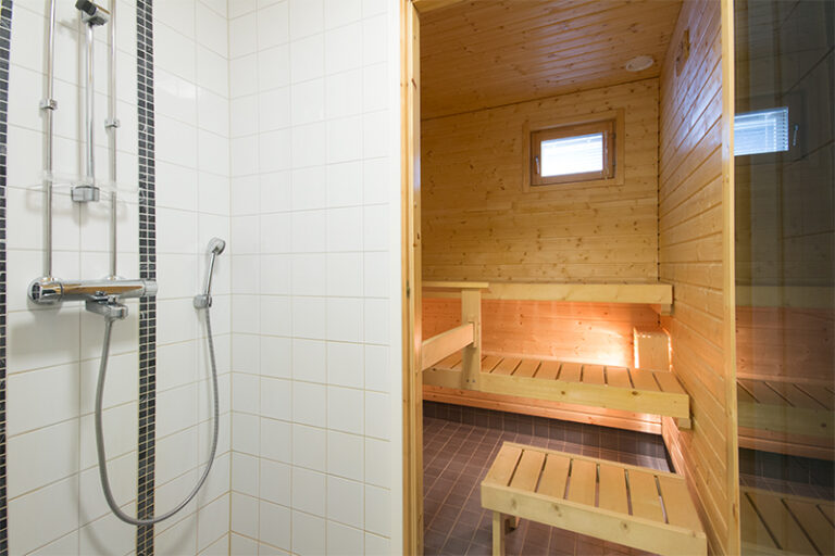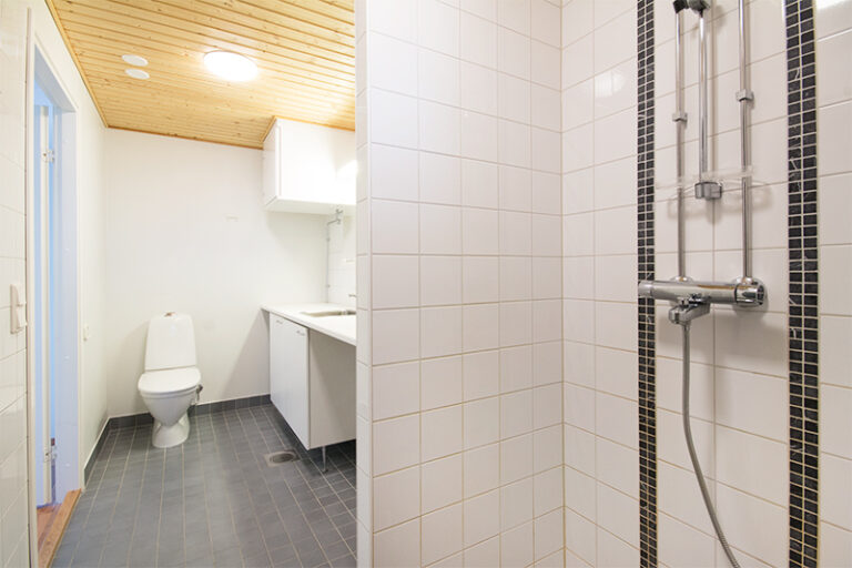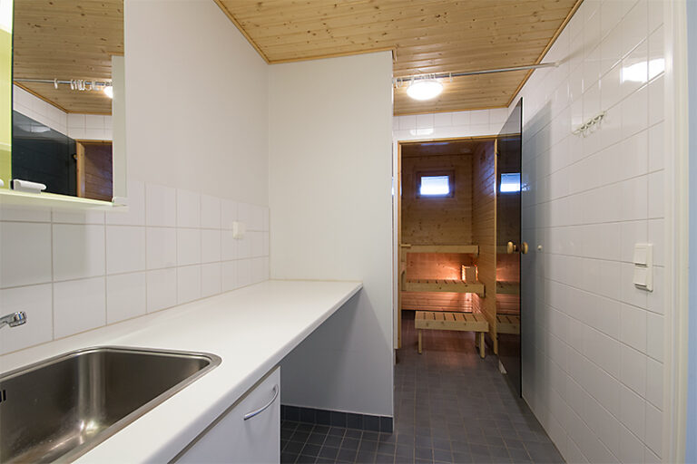 Ylätasossa makuuhuoneet ja reilun kokoinen saunaosasto. Asuntoon kuuluu sekä terassi että parveke.