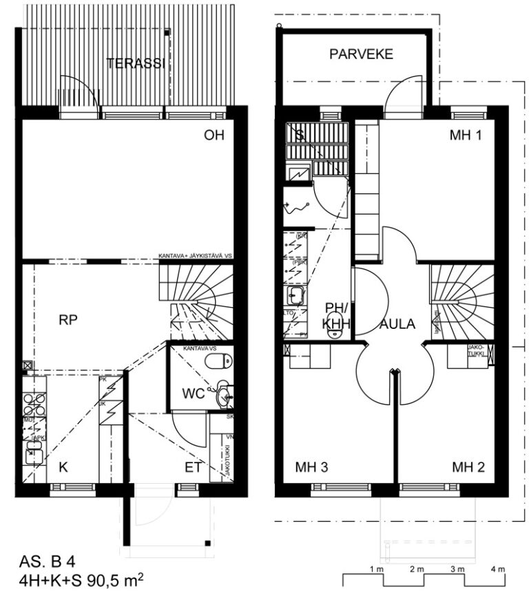 Vapautumassa kaksitasoinen rivitalon päätyasunto Espoon Karhusuolla.