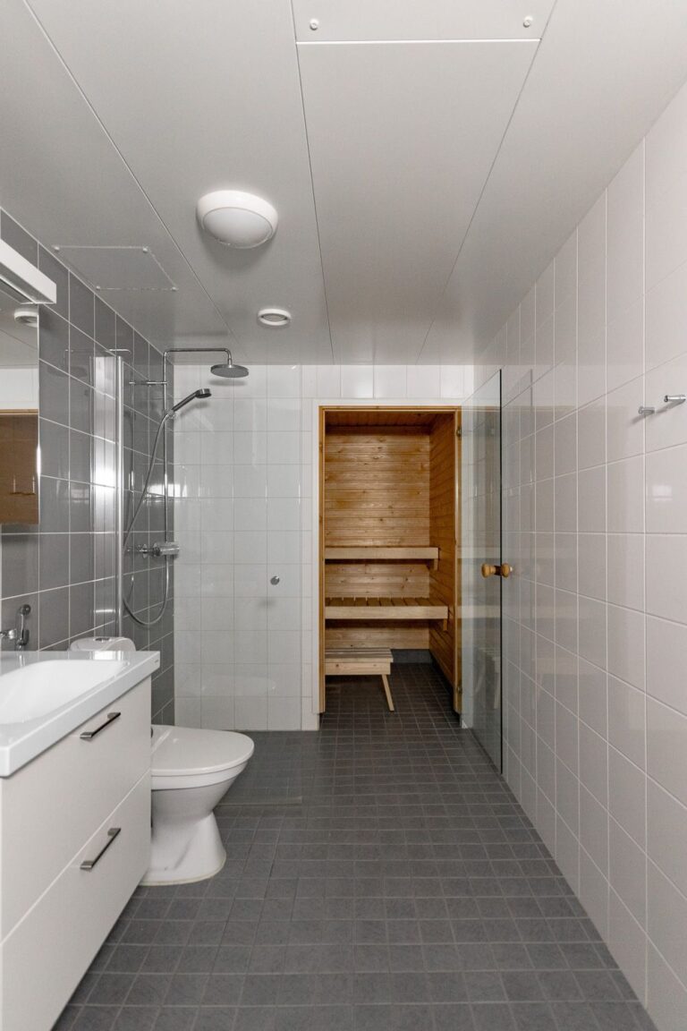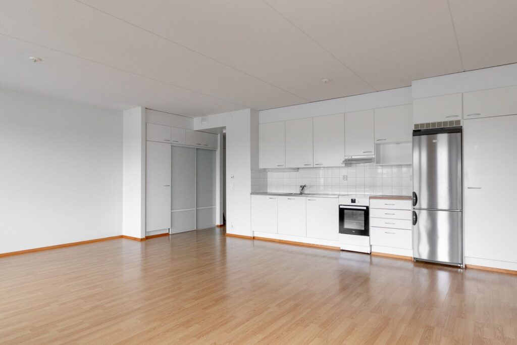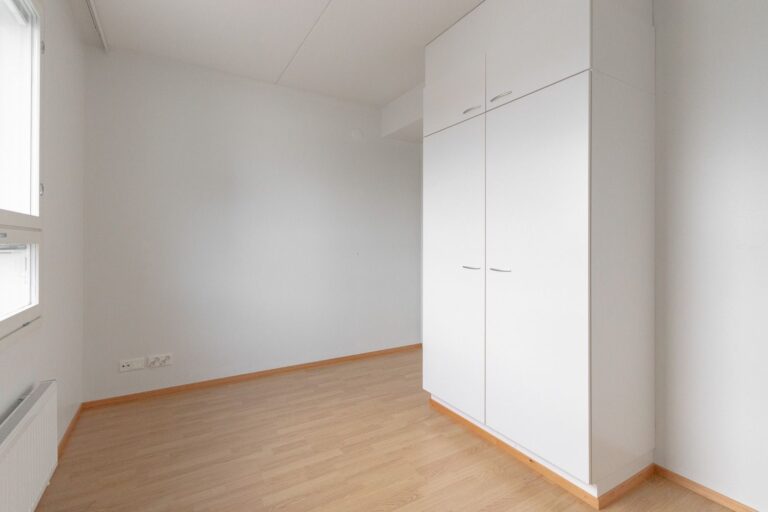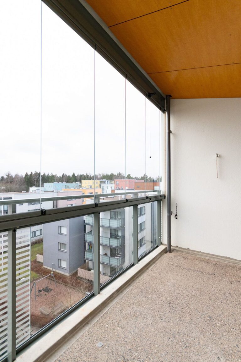 Ylimmän kerroksen päätyasunto. Lasitetulta parvekkeelta on näkymä sisäpihalle etelään. Keittiötila ja olohuone ovat trendikkäästi yhtä suurta tilaa. Päämakuuhuoneessa on koko seinän leveydeltä säilytystilaa. Asunnon varusteluun kuuluu sälekaihtimet. Asukkaiden käytössä on mm. pesula ja tilava kerhohuone. Asuntoon kuuluu lämmin huoneistokohtainen irtainvarasto.