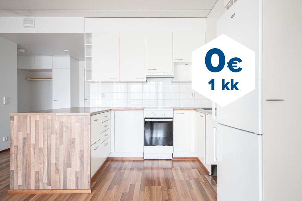 Tee sopimus nyt – saat ensimmäisen kuukauden käyttövastikkeen hintaan 0 €. Etu on voimassa 15.4.2026 saakka ja koskee vain vapaita asuntoja ja uusia asiakkaita. Vesi- ja autopaikkamaksut normaalisti.