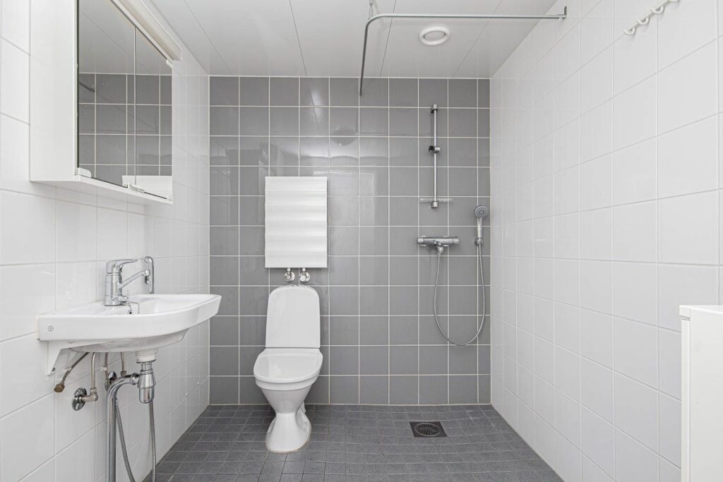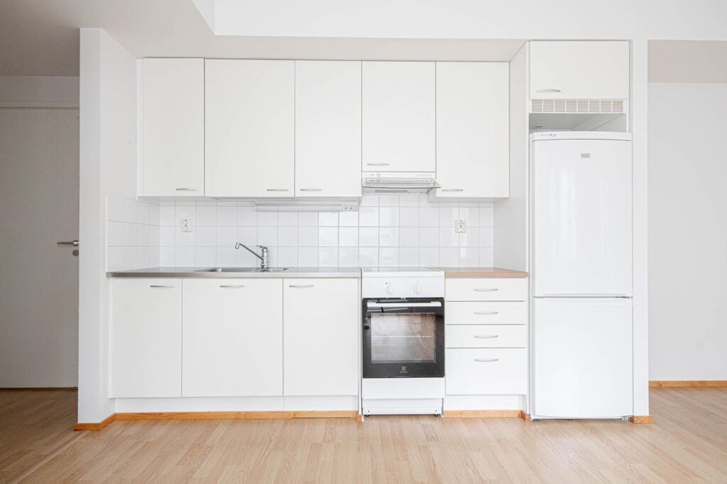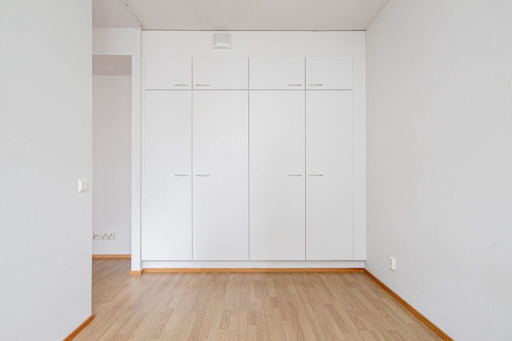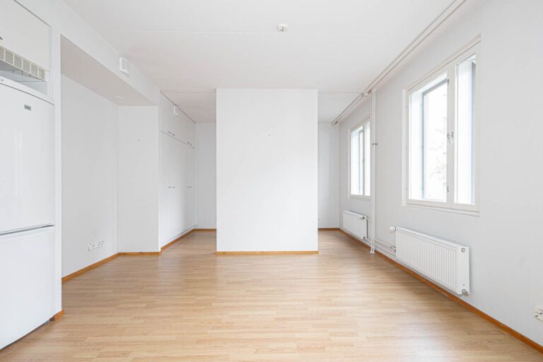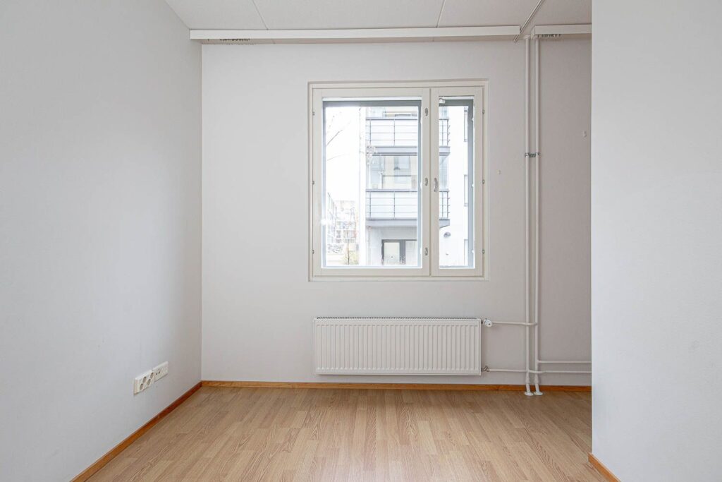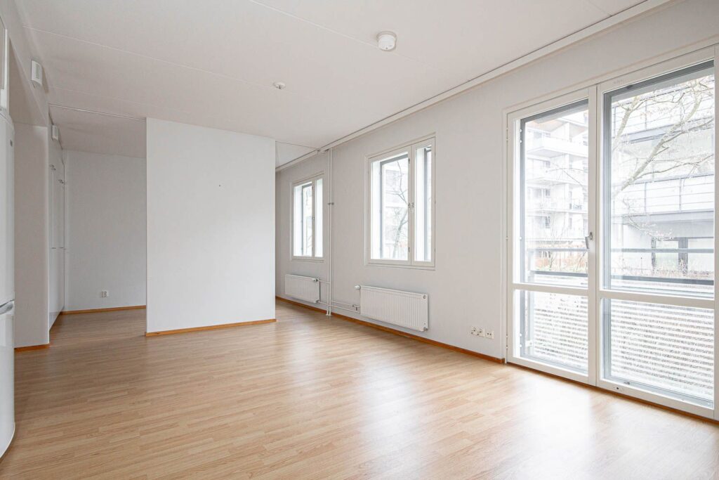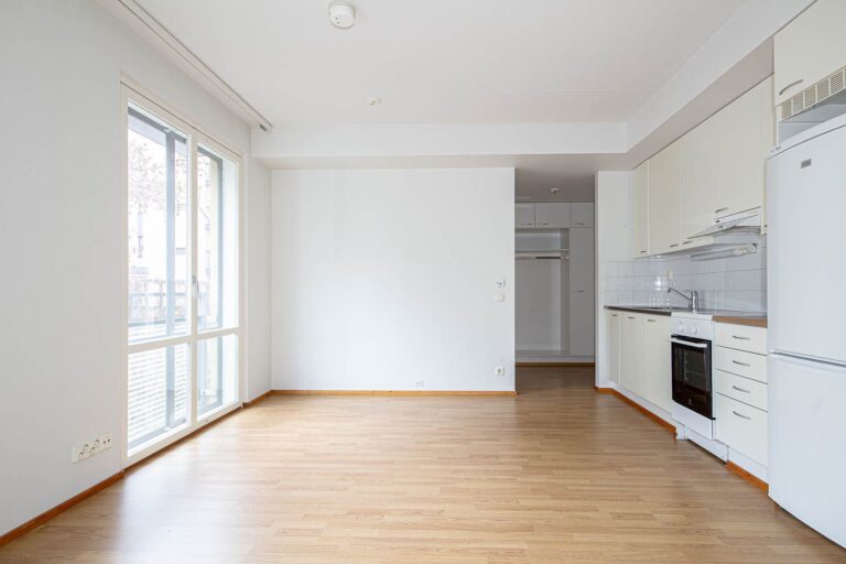 Ensimmäisen kerroksen huoneisto, jossa avonainen keittiö, oh ja makuuhuone yhdistelmä. Kaikki asunnon ikkunat ovat samaan suuntaan rauhalliselle sivukadulle.