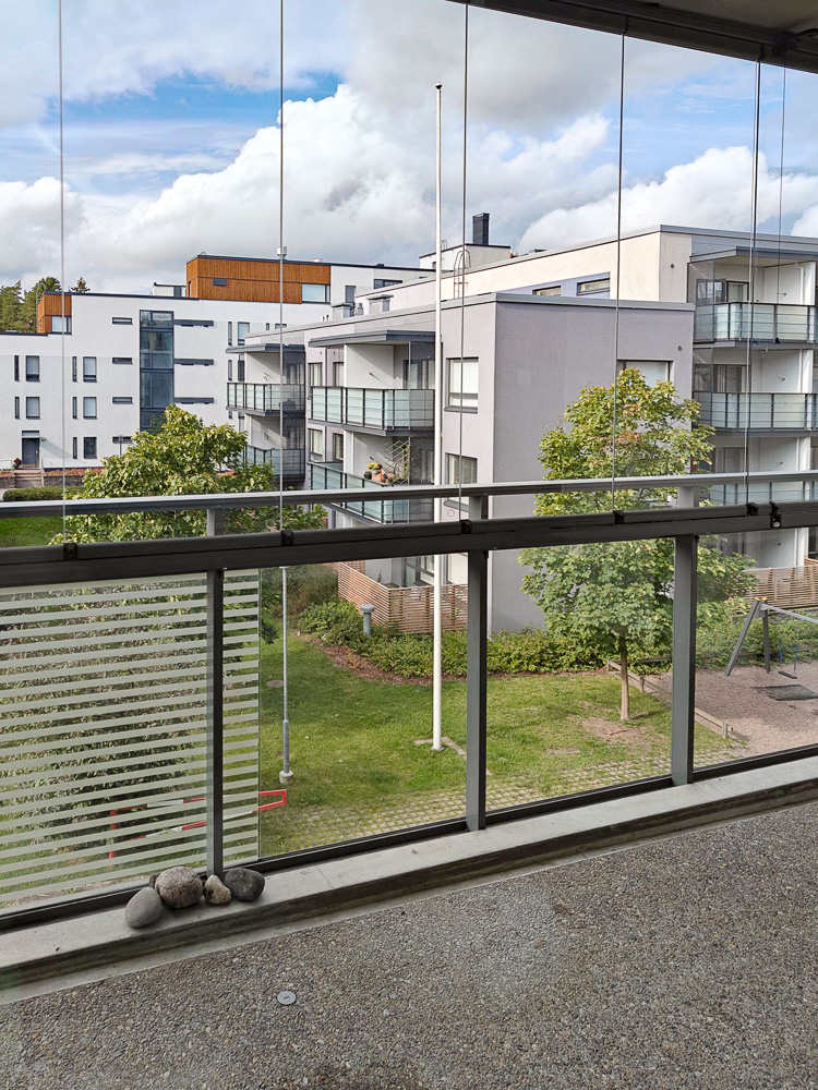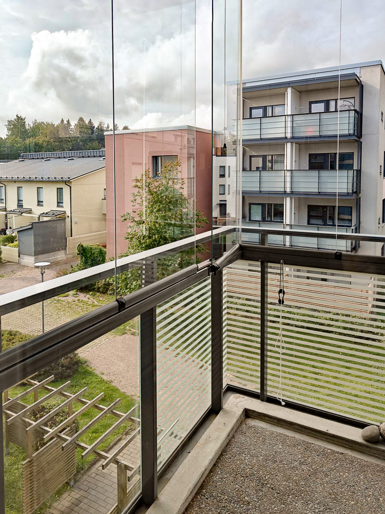 Kolmannen kerroksen kaksio hyvällä pohjaratkaisulla. Tässä asunnossa erikseen lasitettu parveke. Ikkunat ja parveke suuntaa tässä huoneistossa länteen. Suojaisa parveke, ei seinänaapurin parveke heti vieressä.