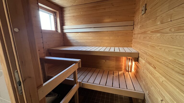 Yläkerrassa on rauhaa ja rentoutumiselle. Kaksi valoisaa makuuhuonetta, joista toisesta on tilava vaatehuone ja pääsy omalle parvekkeelle. Kylpyhuoneen yhteydessä on oma sauna, jossa voit rentoutua aina halutessasi