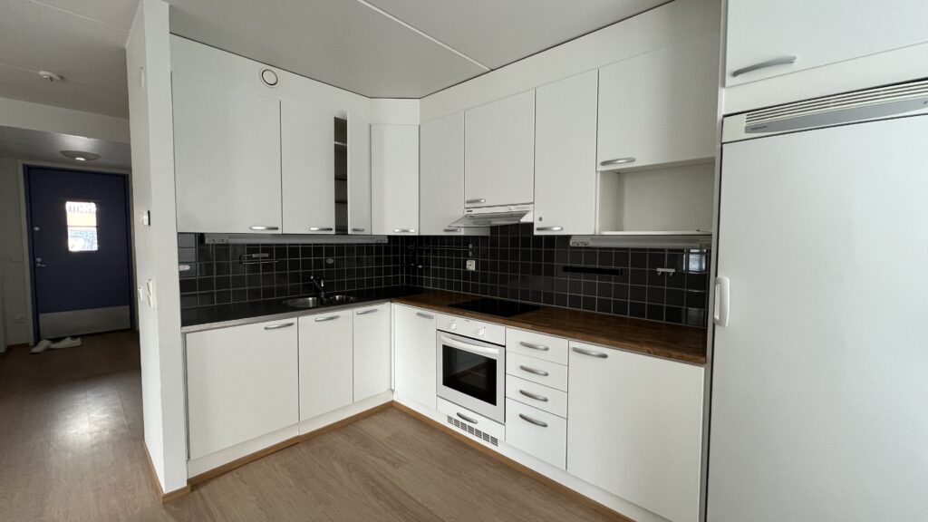 Arjen sujuvuutta tuo avara olohuoneen ja keittiön yhdistelmä, jossa viihdyt niin perheen kuin ystävien kanssa. Olohuoneen yhteydessä on erillinen työtila/alkovi, joka muuntuu tarpeen mukaan makuusopeksi tai vaikka leikkitilaksi.