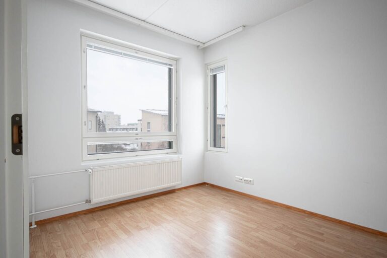Ylimmän kerroksen valoisassa kulmahuoneistossa on avara pohja joka taipuu moneen erilaiseen sisustukseen. Esimerkiksi ikkunalliseen ruokailusyvennykseen on mahdollista luoda tilanjakajahuonekaluilla kolmas makuusoppi tai työtila. Ihana iso lasitettu parveke toimii kesällä viihtyisänä lisähuoneena. Parvekelasit ja sälekaihtimet asennettu muutostöinä.