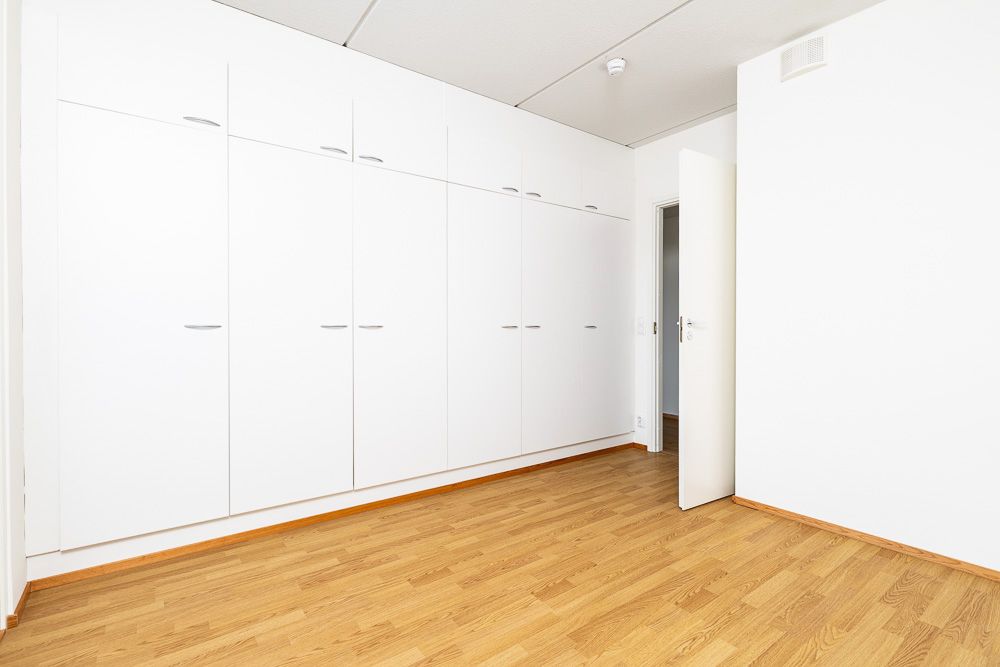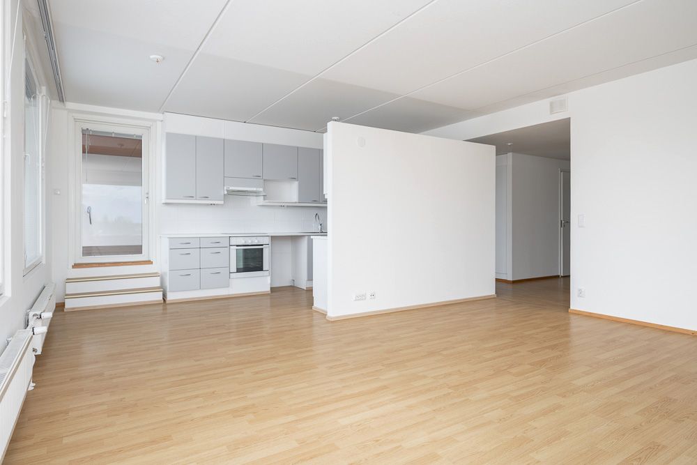 Ylimmän kerroksen valoisa perheasunto omalla saunalla. Päätyhuoneistossa on parvekkeen lisäksi suuri terassi. Asunnon keittiö ja olohuone muodostavat yhtenäisen ja fiksun tilan elämiselle. Makuuhuoneista löytyy kaappeja lisäämään säilytystilaa, ja yhden makuuhuoneen yhteydessä vaatehuone. Kylpyhuoneen lisäksi asunnossa erillinen wc.
