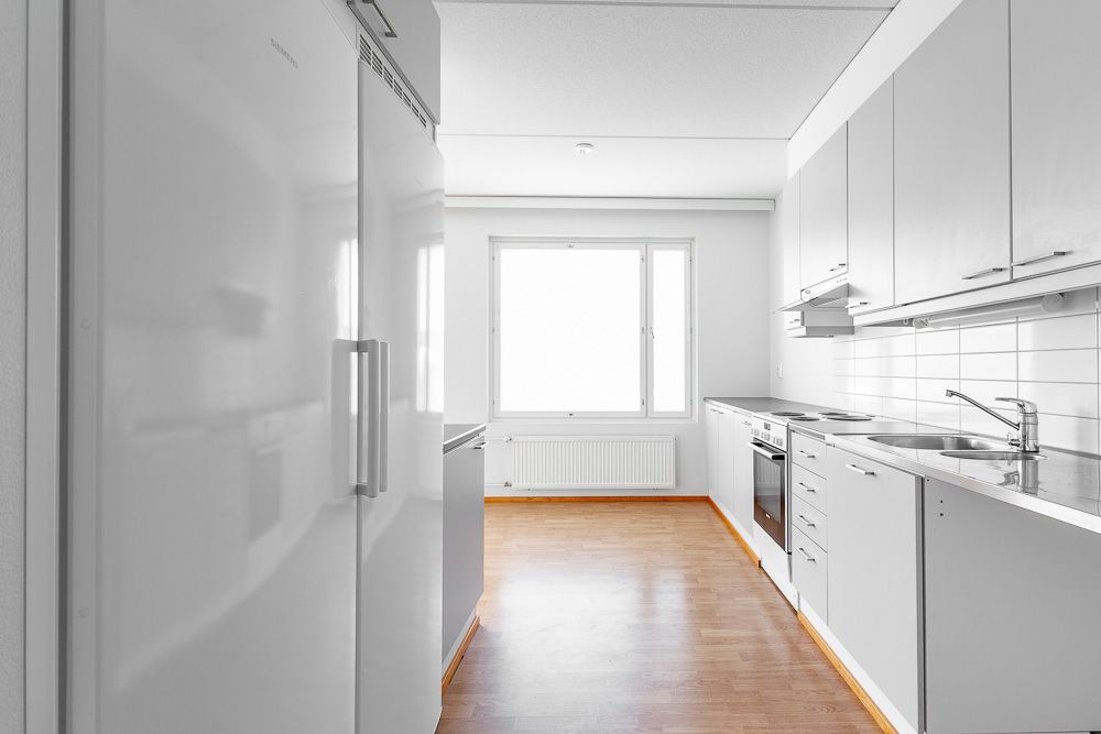 Valoisa ja toimivapohjainen kolmannen kerroksen kolmio tarjoaa kodikasta asumista ja sujuvaa arkea. Keittiö ja ruokailutila yhdistyvät saumattomasti tilavaan olohuoneeseen, luoden avoimen ja viihtyisän oleskelualueen. Molemmissa makuuhuoneissa on hyvin säilytystilaa, ja asumismukavuutta lisäävät erillinen wc sekä reilun kokoinen, laatoitettu kylpyhuone. Oma sauna kutsuu rentoutumaan. Lasitettu parveke avautuu kahteen ilmansuuntaan ja tarjoaa lisätilaa sekä miellyttävät näkymät. Asuntoon kuuluu lisäksi samassa kerroksessa sijaitseva kätevä irtainvarasto.