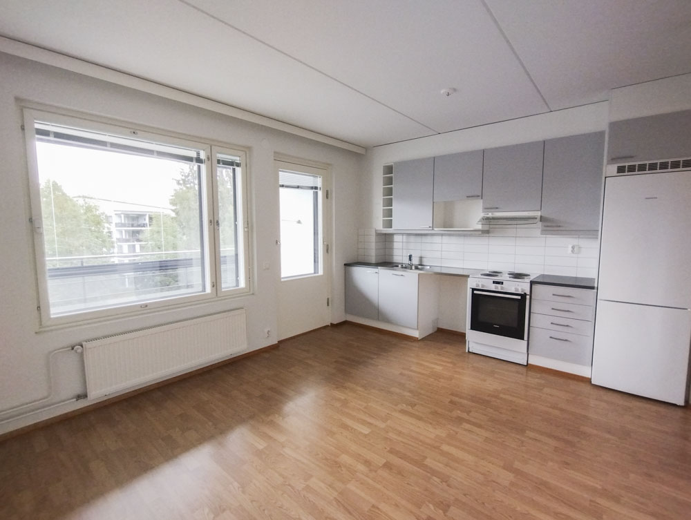 Neljännen kerroksen kompakti ja toimiva yksiö. Asunnossa on valoisa, avoin tupakeittiö sekä erillinen makuuhuone, jossa on runsaasti kaappitilaa. Tilavasta kylpyhuoneesta löytyy oma sauna, ja reilunkokoinen lasitettu parveke tarjoaa loistavan paikan rentoutua vuodenajasta riippumatta.