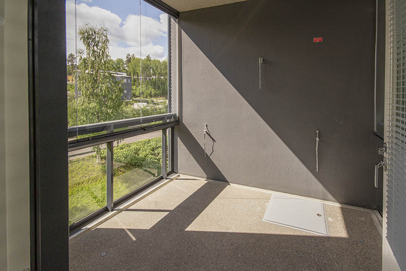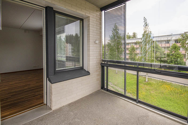Tähän päätyhuoneistoon on lisä- ja muutostyönä asennettu parvekelasitus sekä sälekaihtimet. Erillis wc lisää arjen sujuvuutta.