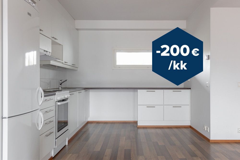 Kampanjaetu uusille asiakkaille! Saat 200 € alennuksen tämän asunnon kuukausittaisesta käyttövastikkeesta vuoden 2026 loppuun asti. Etu koskee uusia sopimuksia, jotka allekirjoitetaan viimeistään 31.5.2026. Alennus myönnetään kuukausilta, joilta käyttövastiketta kertyy vähintään 15 päivältä. Lue tarkemmat kampanjaehdot.