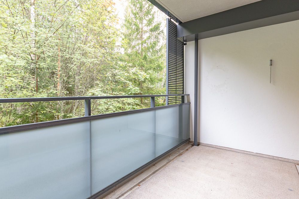 Kodin sydämenä toimii avara olohuone, josta avautuvat näkymät vihreään maisemaan – ikkunat ja parveke suuntautuvat luonnonrauhaan, tarjoten ihastuttavaa tunnelmaa ympäri vuoden. Parveke on mahdollista lasittaa, jolloin saat siitä viihtyisän lisätilan myös viileämpinä vuodenaikoina.