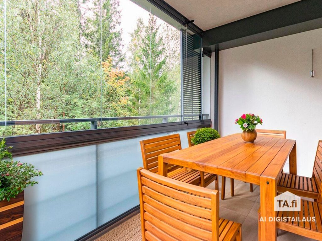 Asunto sijaitsee rauhallisessa ja hyvin hoidetussa taloyhtiössä, vehreän luonnon äärellä. Kodin sydämenä toimii avara olohuone, josta avautuvat näkymät vihreään maisemaan – ikkunat ja parveke suuntautuvat luonnonrauhaan. LASITETTU PARVEKE! Olohuoneesta ja lasitetulta parvekkeelta avautuvat vehreät luontonäkymät, jotka tuovat rauhaa ja viihtyisyyttä asumiseen ympäri vuoden. Iso kylpyhuone ja oma sauna. Kaappitilaa on runsaasti. Keittiössä tilavaraus mikrolle ja astianpesukoneelle.