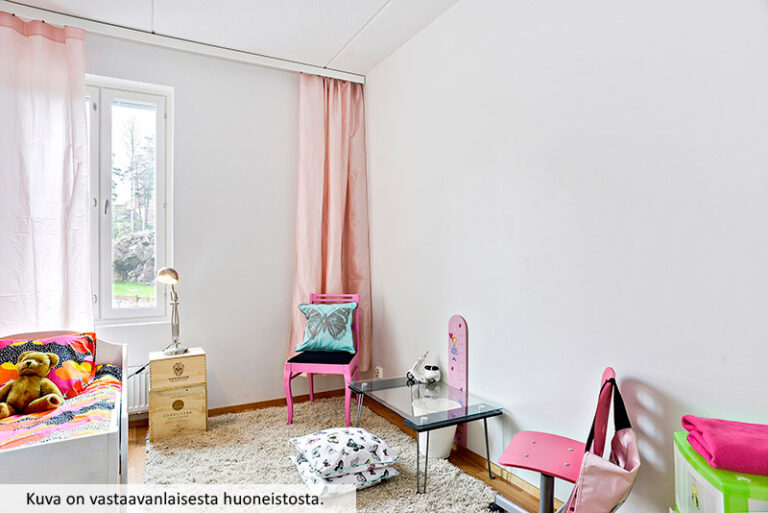 Selkeäpohjainen perheasunto luonnonläheisellä alueella, hyvien ulkoilumahdollisuuksien äärellä. Oma sauna, parveke sekä erillis-wc lisäävät asumismukavuutta. Toisen kerroksen kulma-asunto, jossa on ikkunoita kolmeen eri ilmansuuntaan. Lattiat ovat helppohoitoista laminaattia ja seinät on maalattu valkoisiksi. Ikkunallinen kylpyhuone on laatoitettu ja sinne mahtuu hyvin pyykinpesukone tai pesutorni. Keittiöön on asennettu keväällä 2023 induktioliesi.
