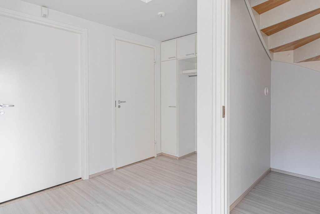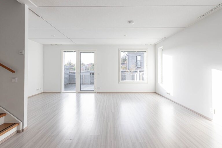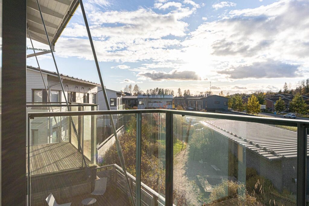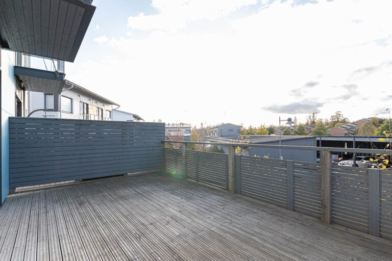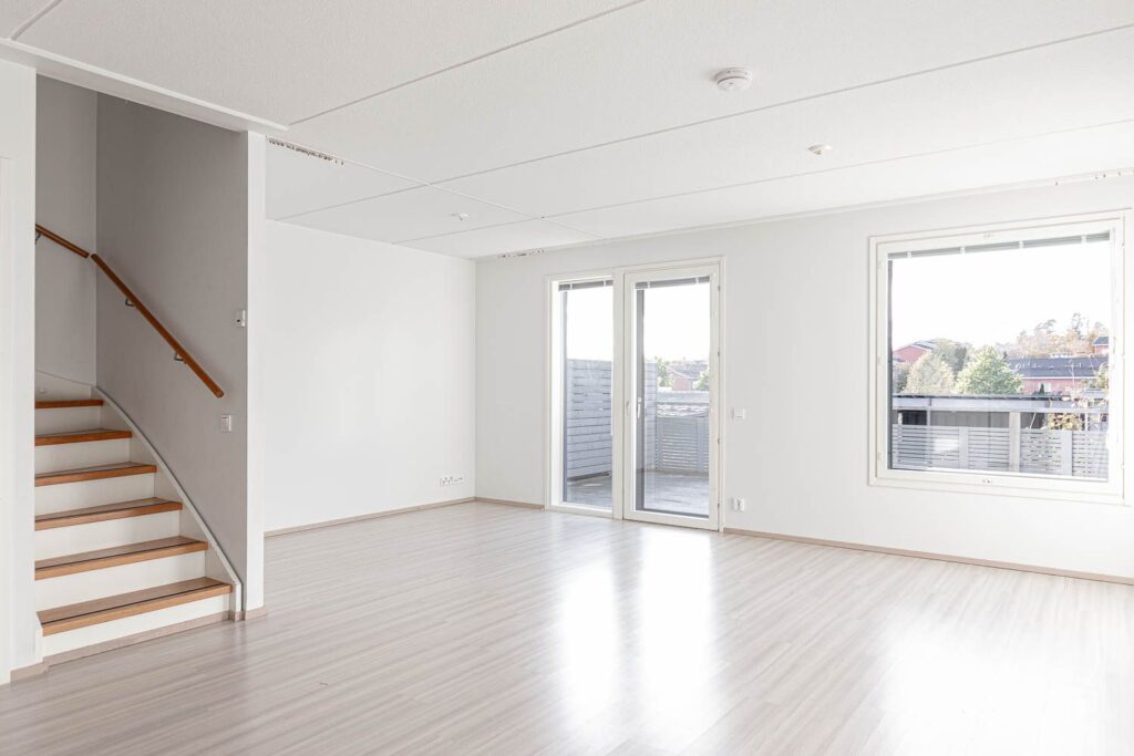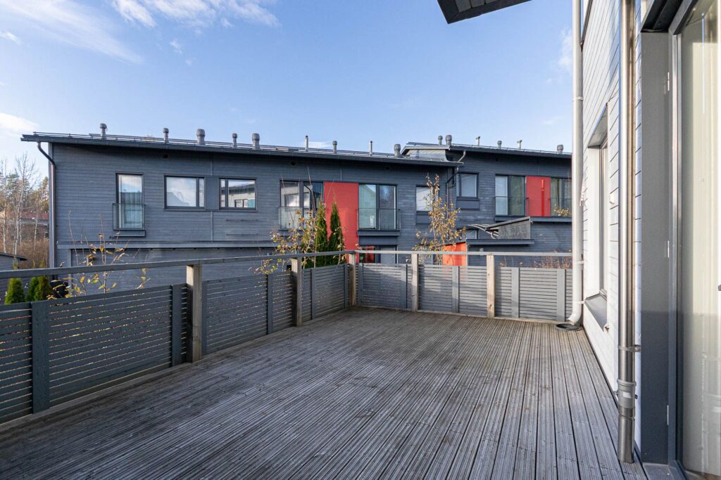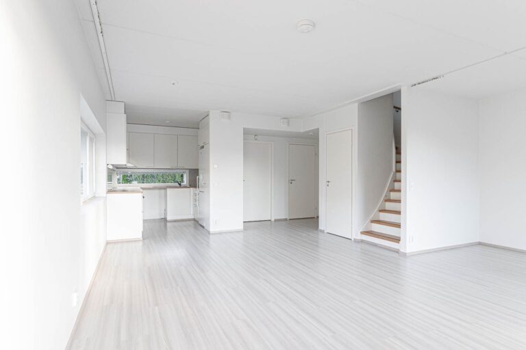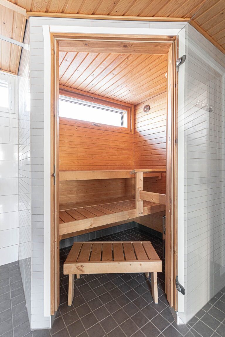 Alakerta koostuu avarasta olohuoneesta, joka yhdistyy luontevasti ruokailutilaan ja keittiöön. Suuret ikkunat ja kulku omalle terassille tuovat valoa ja viihtyvyyttä arkeen. Alakerrasta löytyy lisäksi eteinen, erillinen WC sekä käytännöllinen varastotila ulko-oven läheisyydessä. Yläkerrassa sijaitsevat kolme tilavaa makuuhuonetta, kylpyhuone sekä oma sauna rentoutumiseen.