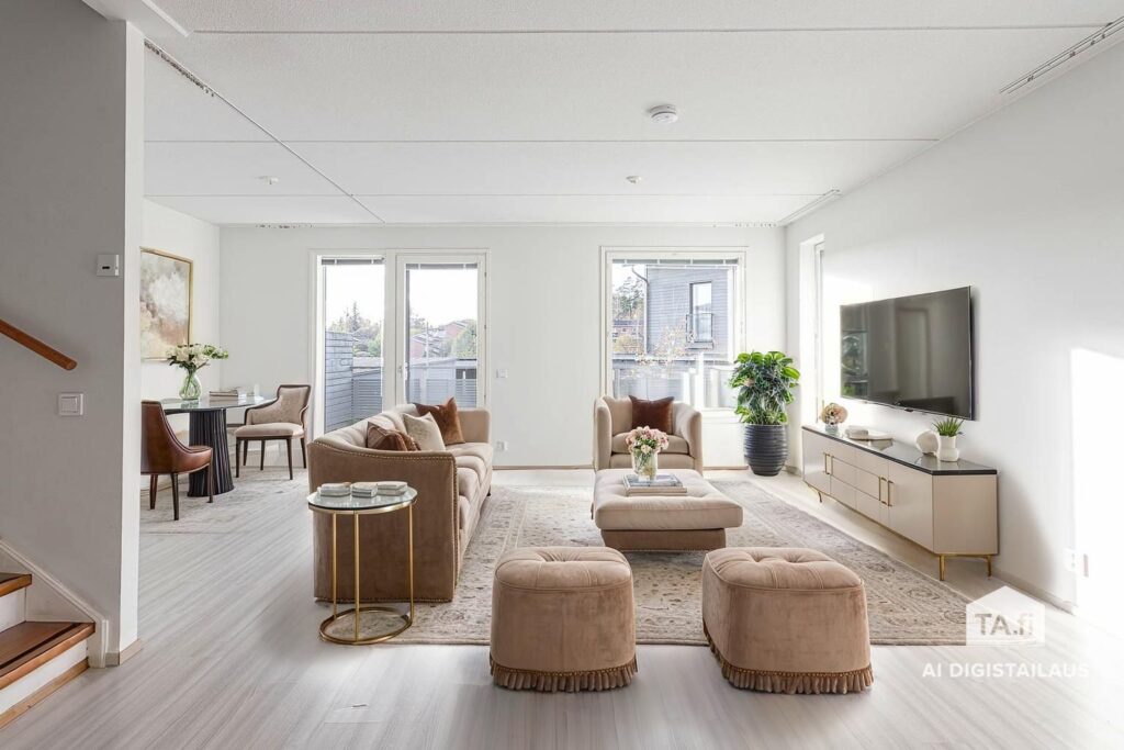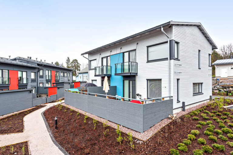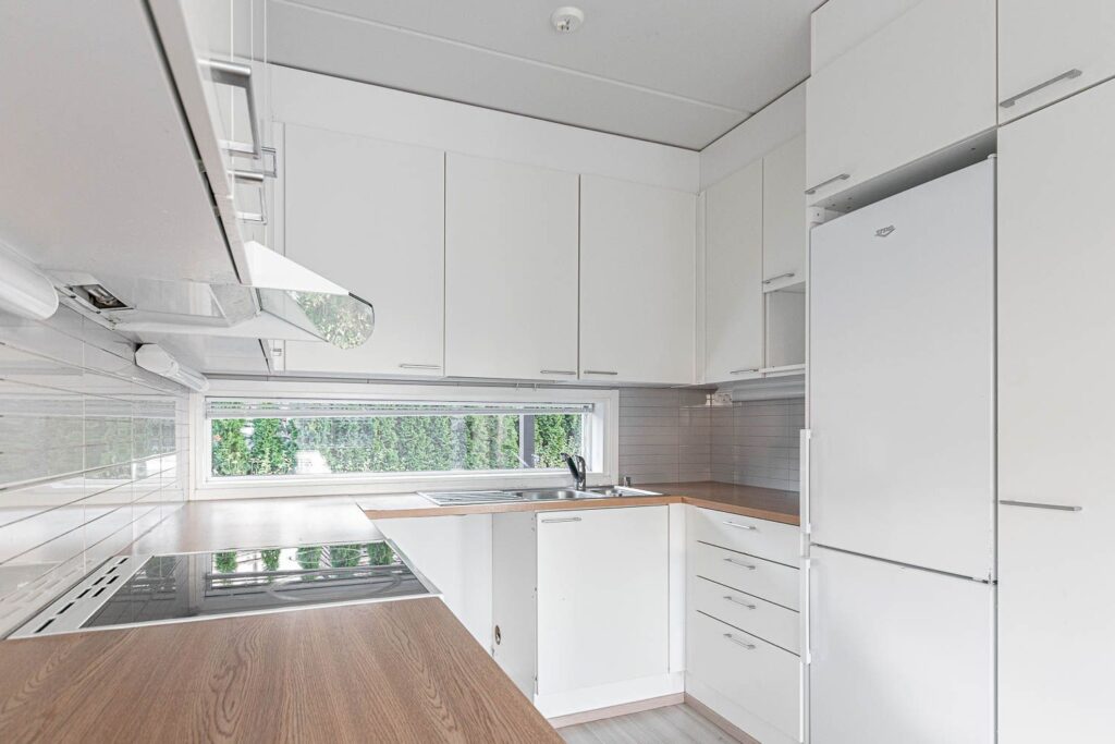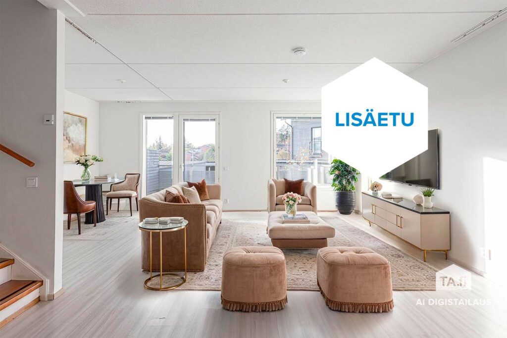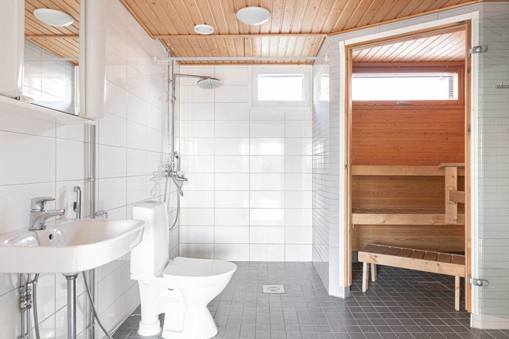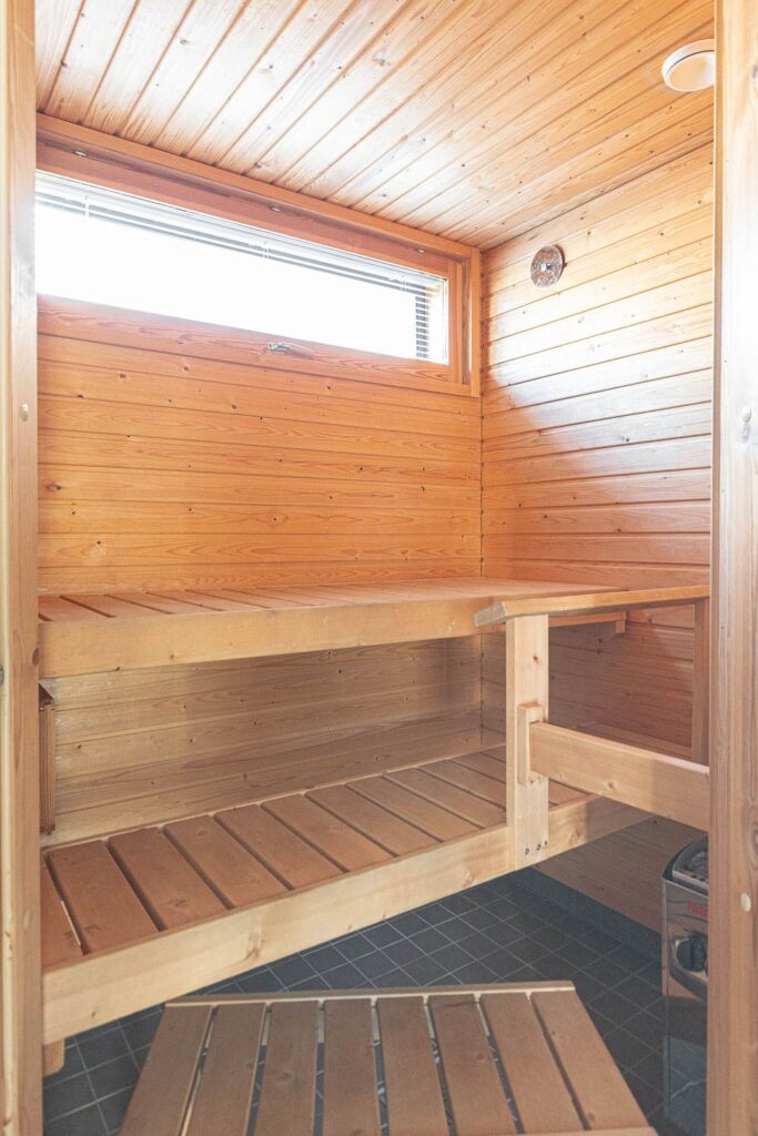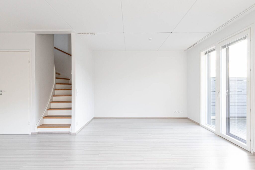 Alakerta koostuu avarasta olohuoneesta, joka yhdistyy luontevasti ruokailutilaan ja keittiöön. Suuret ikkunat ja kulku omalle terassille tuovat valoa ja viihtyvyyttä arkeen. Alakerrasta löytyy lisäksi eteinen, erillinen WC sekä käytännöllinen varastotila ulko-oven läheisyydessä. Yläkerrassa sijaitsevat kolme tilavaa makuuhuonetta, kylpyhuone sekä oma sauna rentoutumiseen.