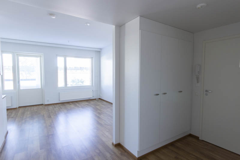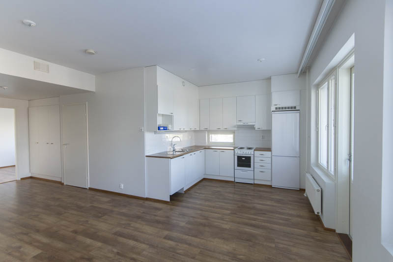 Vapautumassa tilava kulmahuoneisto. Huoneistossa reilusti säilytystilaa, laminaattilattiat, laatoitettu kylpyhuone sekä lasitettu parveke. Huoneisto sijaitsee helppokulkuisesti sisääntulokerroksessa.