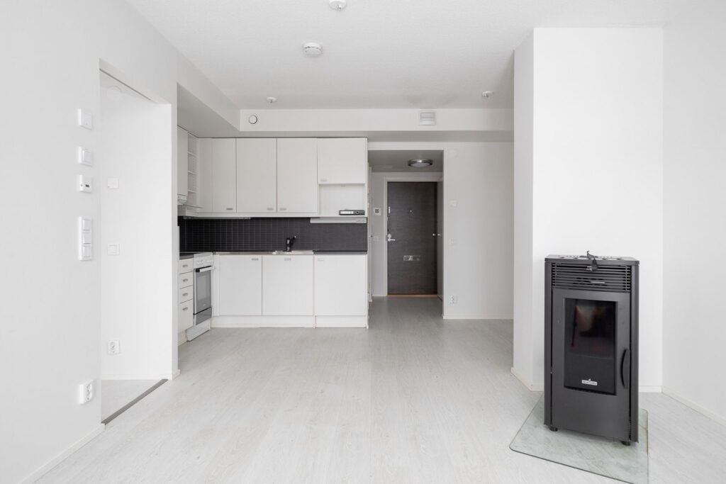 Asunnossa on avara olohuone/keittiö sekä erillinen makuuhuone. Tunnelmaa luo pellettitakka ja kaunis, melkein valkoinen laminaattilattia. Iso lasitettu parveke etelään, josta näkymä avaralle sisäpihalle. Kylpyhuoneessa tilavaraus ja liitännät pyykinpesukoneelle ja kuivausrummulle. Yhteissaunasta voi halutessaan varata saunavuoron.