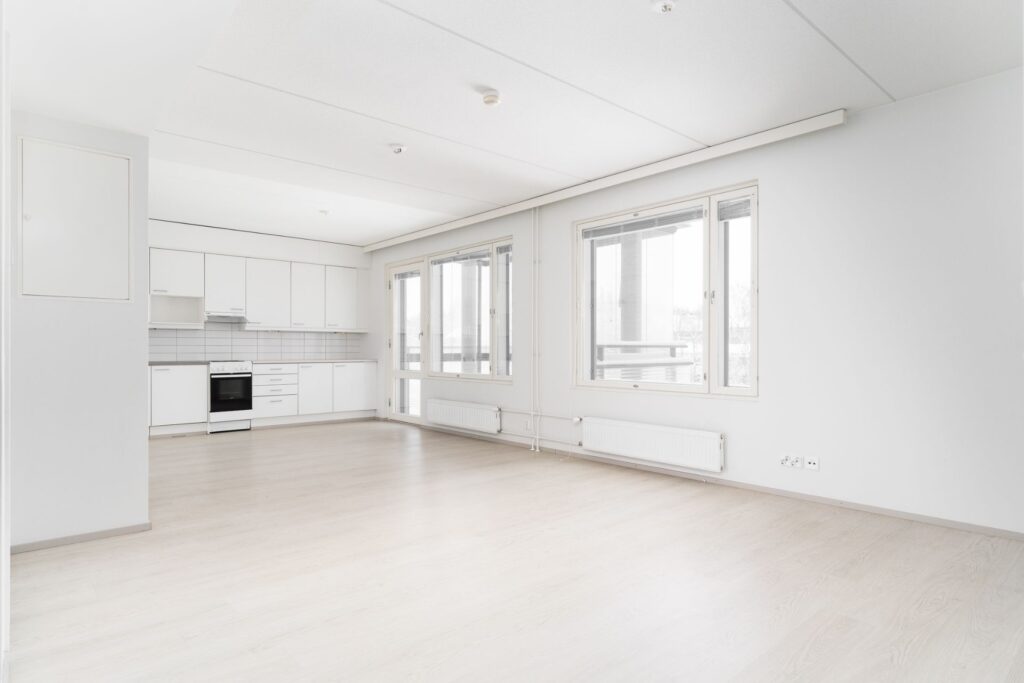 Tilava neljännen kerroksen avarapohjainen läpitalon kolmio. Asunnon eteisen yhteydessä on säilytystilaa ja tilava kylpyhuone. Kylpyhuoneesta löytyy oma sauna, jonne pääsee rentoutumaan oman aikataulun puitteissa. Makuuhuoneissa on runsaasti kaappitilaa. Keittiö on luotu toimivaksi kokonaisuudeksi ja myös sieltä löytyy runsaasti säilytystilaa keittiötarvikkeille. Astianpesukoneelle on tilavaraus. Keittiön yhteydessä on asunnon tilava olohuone. Asunnossa on lisäksi viihtyisä lasitettu parveke.