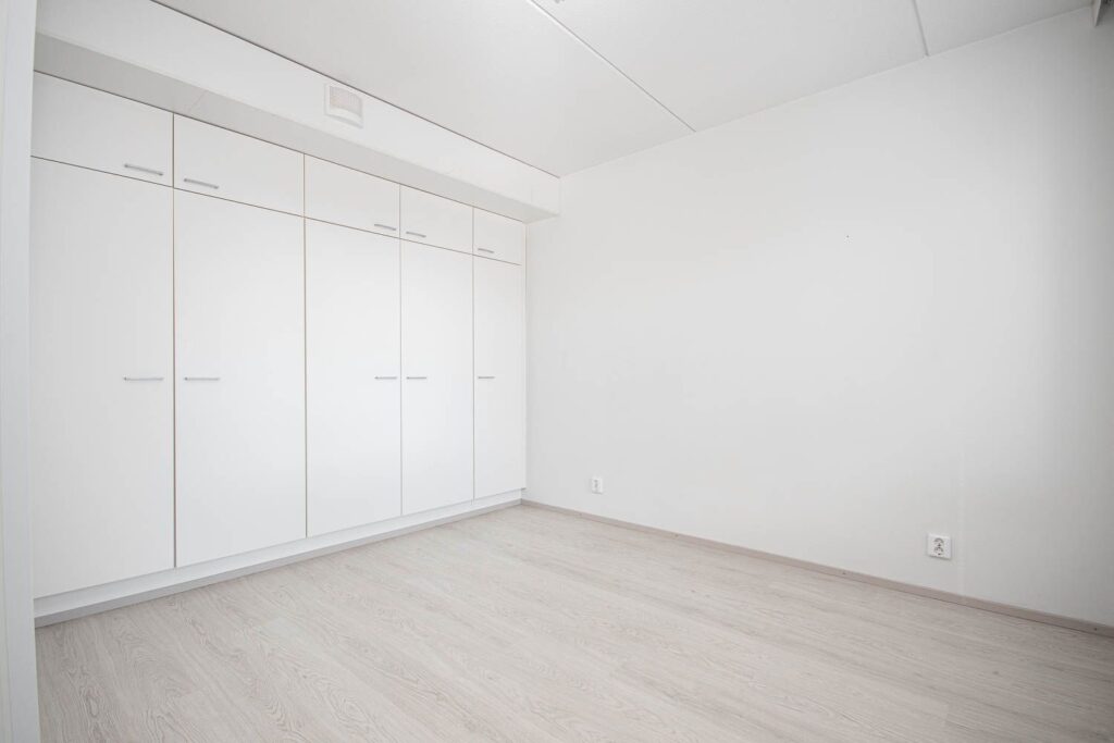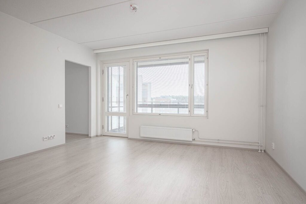 Olohuone ja keittiö ovat yhtenäistä avointa ja valoisaa tilaa. Olohuoneesta on kulku koko asunnon levyiselle parvekkeelle, jossa voit rentoutua aina halutessasi. Makuuhuoneessa on seinän leveydeltä säilytystilaa. kaapistoissa. Kylpyhuone on tilava ja siellä on hyvin tilaa pesutornille.