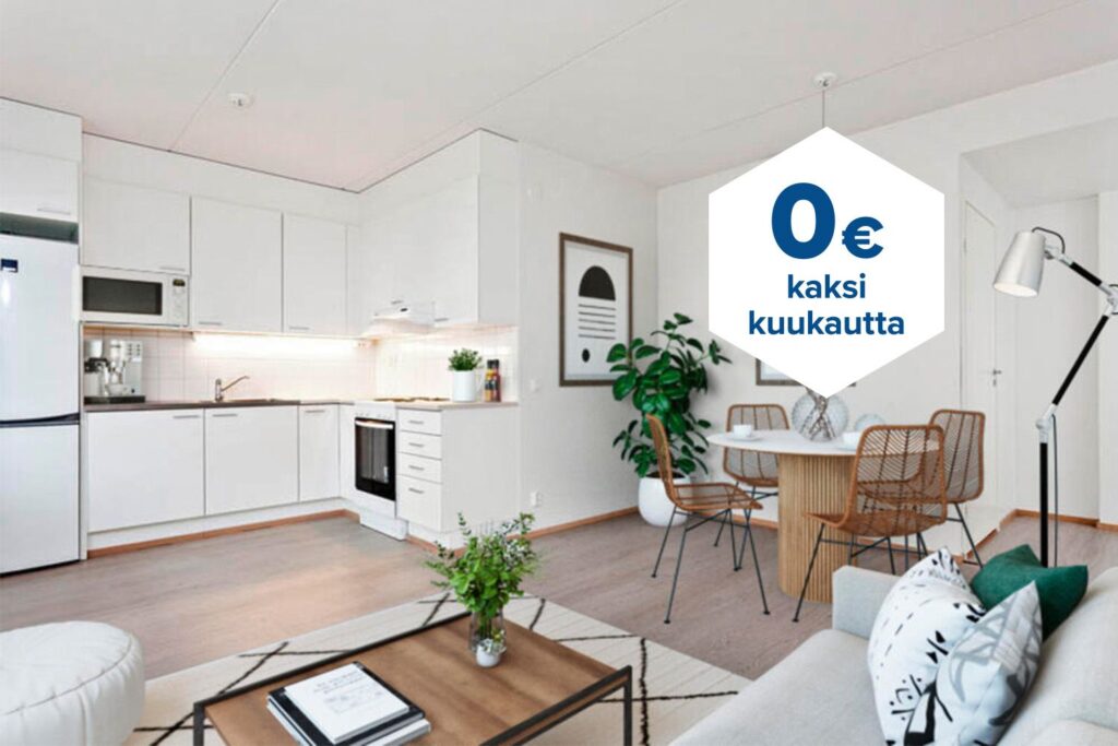 Tee sopimus nyt – saat kahden ensimmäisen kuukauden käyttövastikkeen hintaan 0 € ja vakuusmaksun 250 €. Edut ovat voimassa 15.4.2026 saakka ja koskevat vain uusia asiakkaita. Vesi- ja autopaikkamaksut normaalisti. Edellyttää 12 kuukauden asumista.