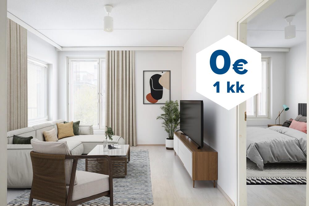 Viihtyisällä sijainnilla ihastuttava asumisoikeuskolmio. Asunnon keittiö on sijoitettu erilleen tilavasta olohuoneesta, joten sinne mahtuu hyvin ruokailuryhmä. Pienemmästä makuuhuoneesta löytyy valmiina kaappitilaa, päämakuhuoneessa on vaatehuone. Asunnossa pääset nauttimaan myös oman saunan ja parvekkeen rauhasta. Viileällä varastoullakolla on reilusti säilytystilaa.